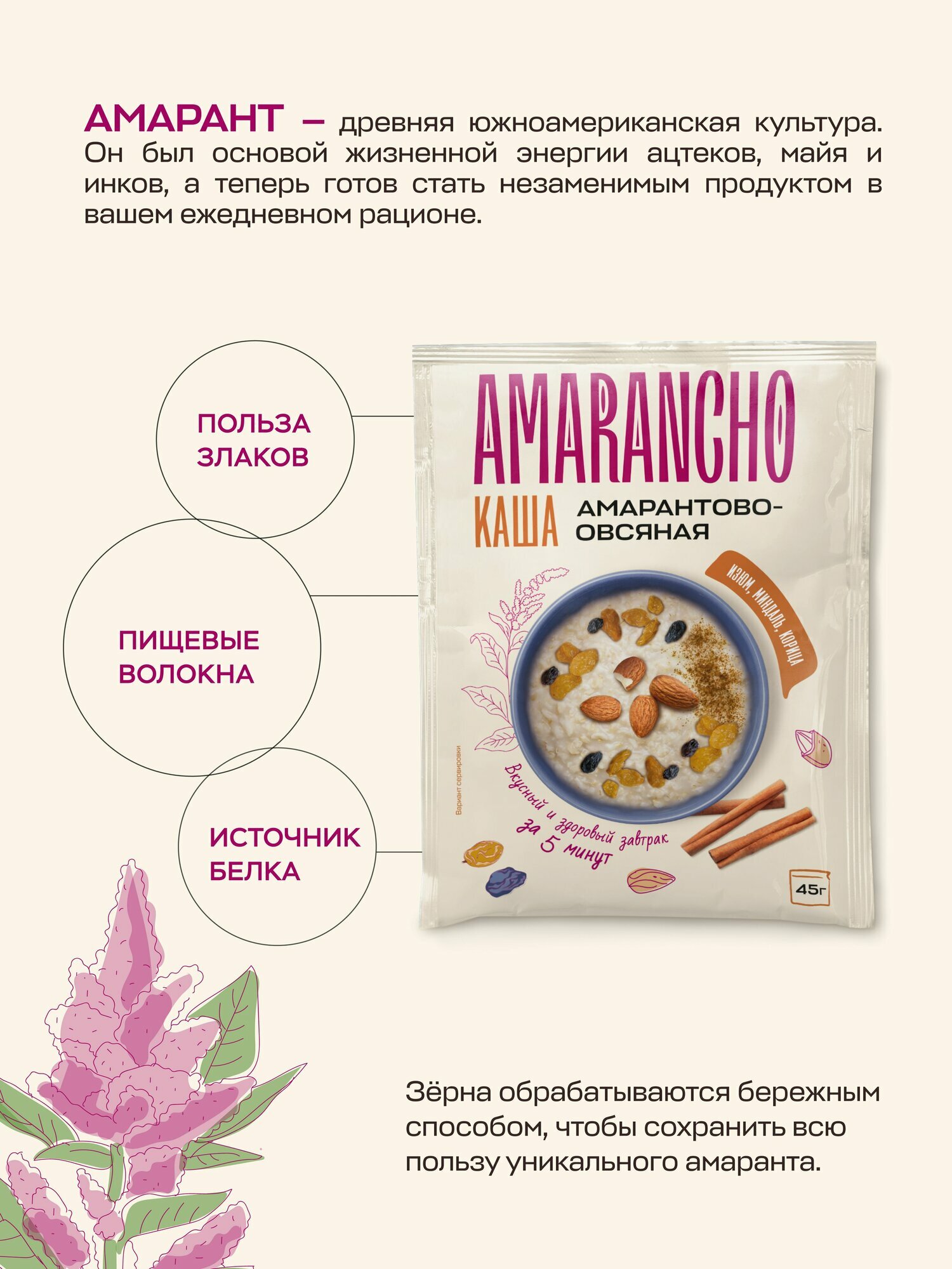 Каша амарантово-овсяная сладкий набор "Amarancho", быстрого приготовления, 10 пакетиков по 45 г 519 ₽