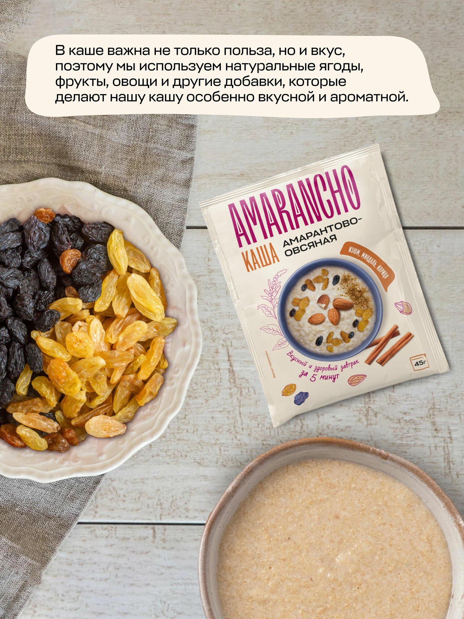 Каша амарантово-овсяная с изюмом, миндалем и корицей "Amarancho", быстрого приготовления 10 пакетиков по 45 г информация: