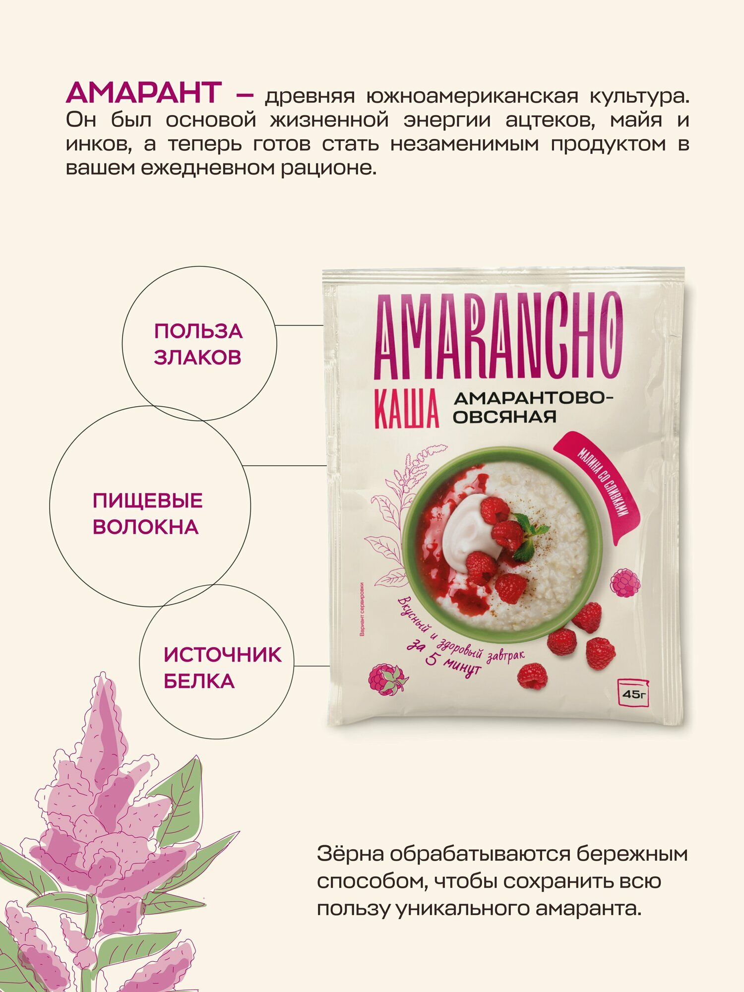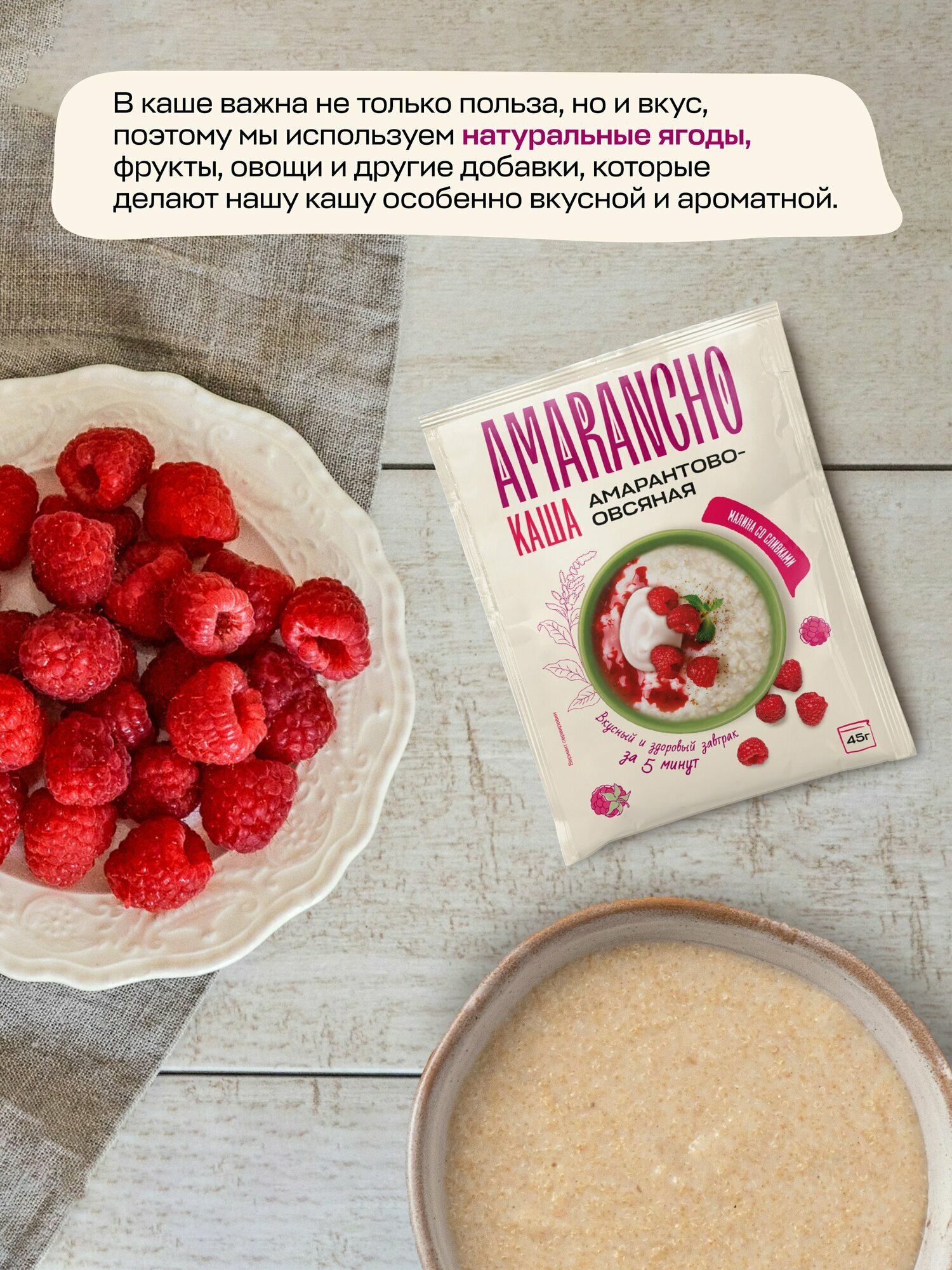 Каша амарантово-овсяная малина со сливками "Amarancho", быстрого приготовления, 10 пакетиков по 45 г информация: