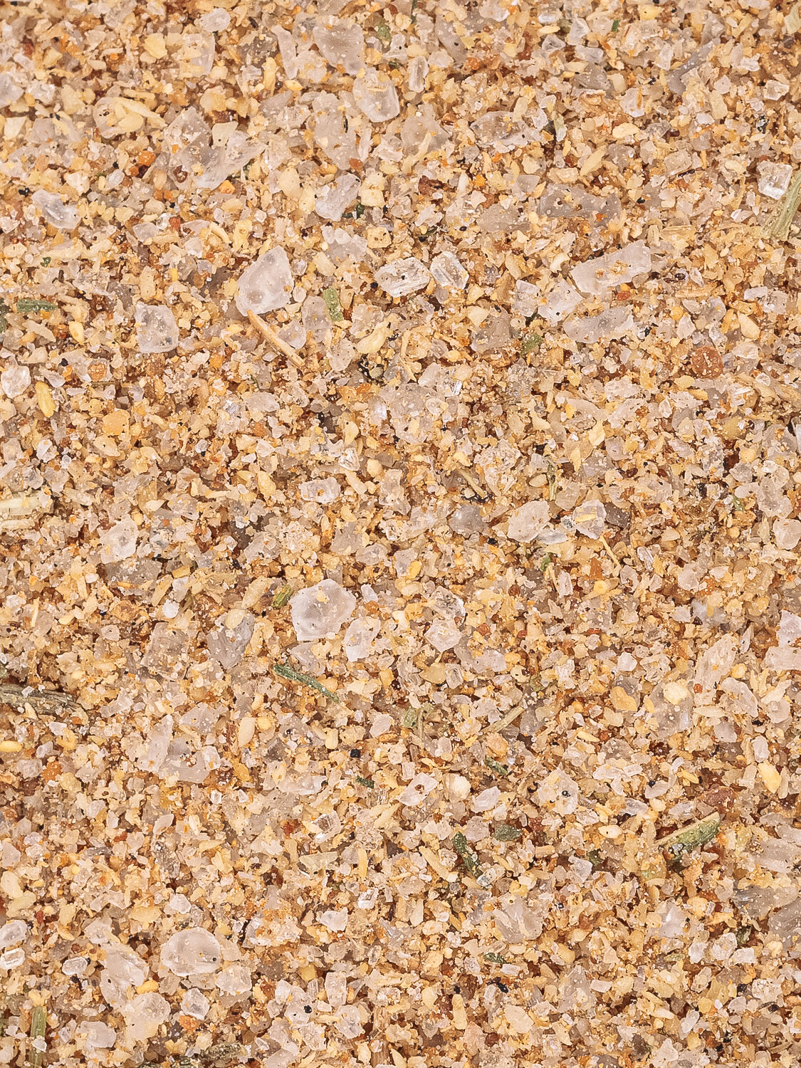 | Состав | соль морская пищевая, чеснок гранулы, сахар, паприка сладкая молотая, уцхо сунели молотое, укроп зелень, перец черный молотый ,соль гималайская розовая, ароматизатор "чеснок" |