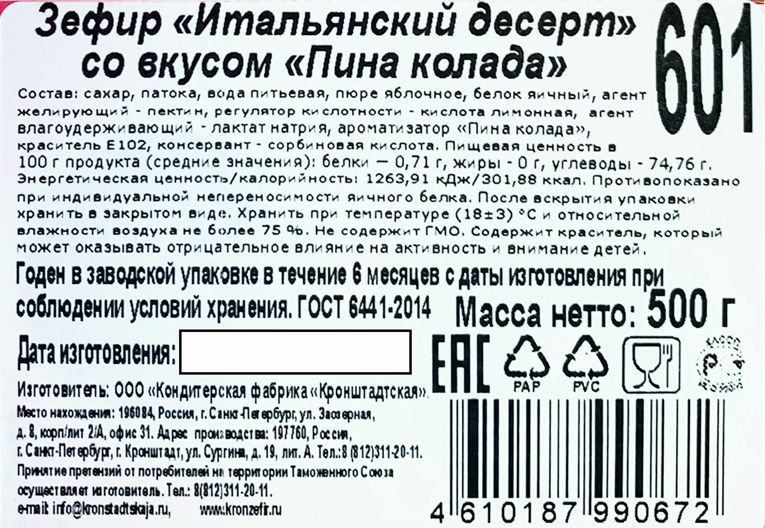 Зефир Пина колада "Итальянский десерт", 500г х 2шт информация: