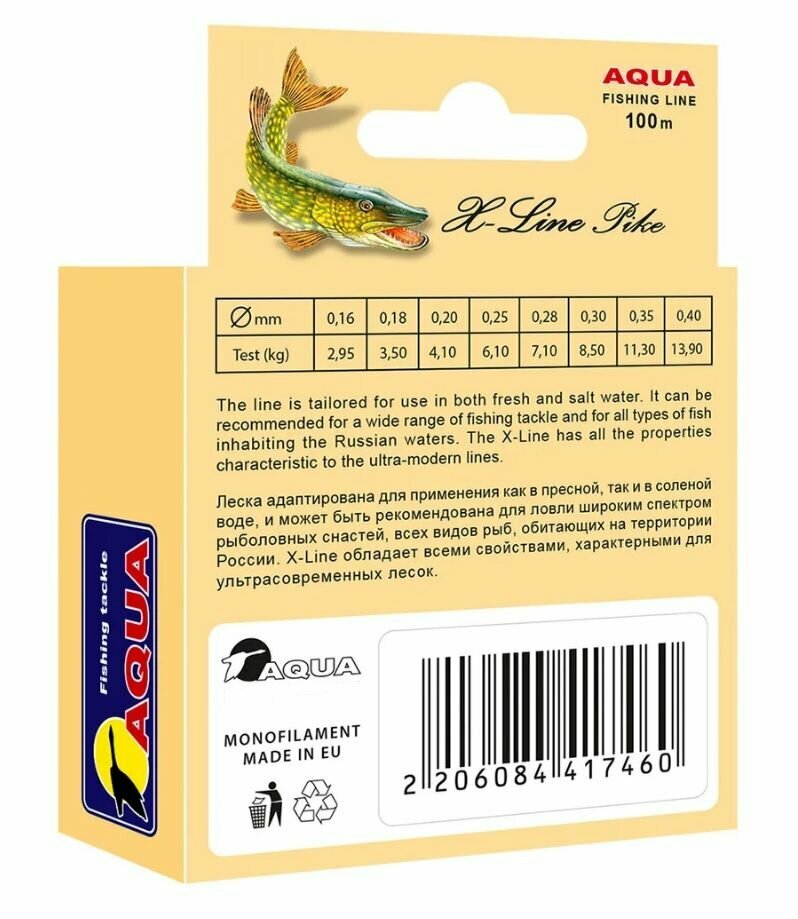Монофильная леска для рыбалки Aqua X-Line Pike (Щука) 0,16mm 100m ( 6 штук ) информация: