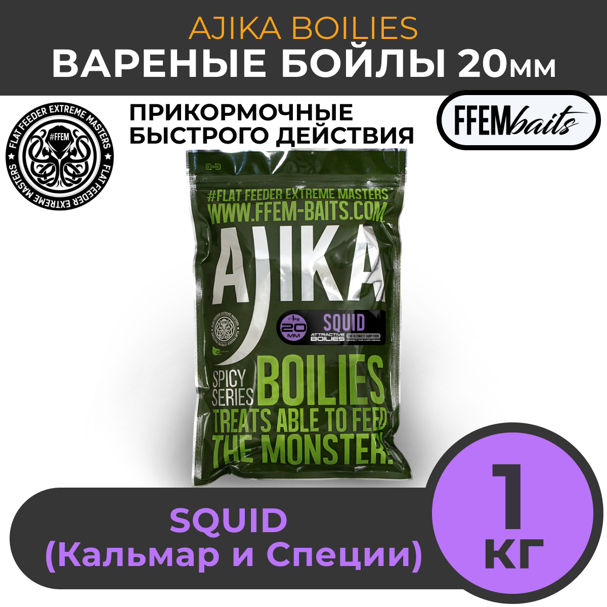 FFEM Бойлы варенный Ajika Boilies Squid 20mm (1кг) информация: