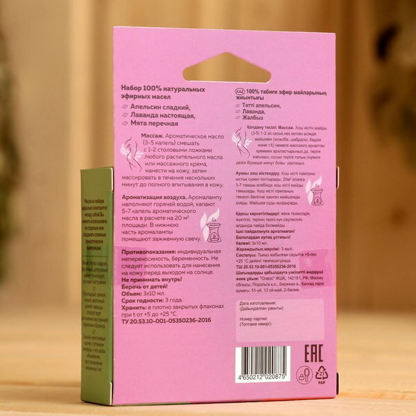 Набор 100% натуральных эфирных масел "Апельсин, лаванда, мята перечная" информация: