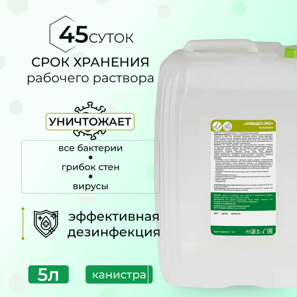 Средство дезинфицирующее 5 л, алмадез-эко, концентрат, АЛ-ЭКО-5л, 609557 информация: