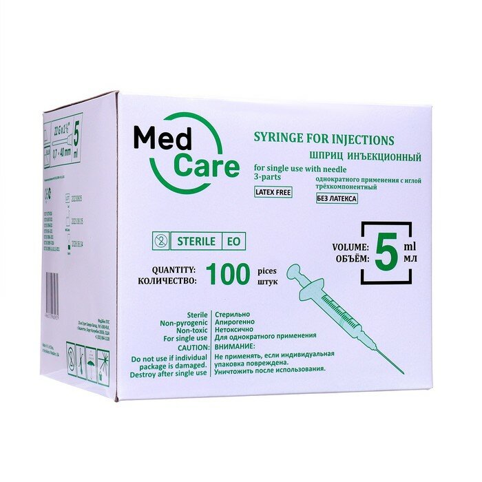 Отзывы на Шприц инъекционный однократного применения 3-х компонентный MedAim 5 мл с иглой 0,7х40 (22Gх1 1/2") Луер Лок , 50 шт