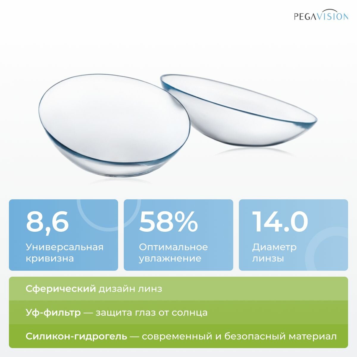 PegaVision Aquamax 2 линзы R. 8.6 SPH -4.00, двухнедельные 458 ₽