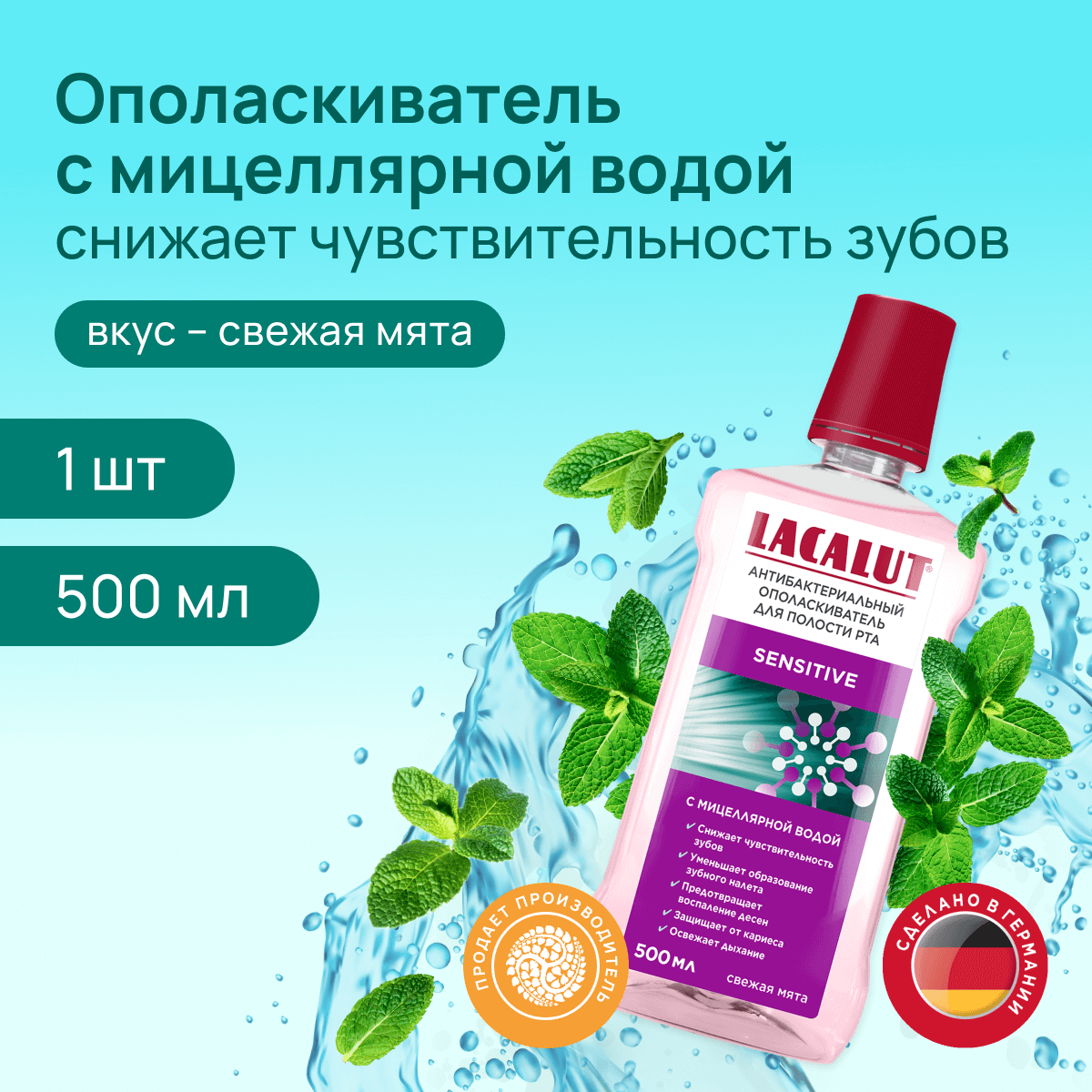 10 цен на LACALUT® sensitive антибактериальный ополаскиватель для полости рта, 500 мл