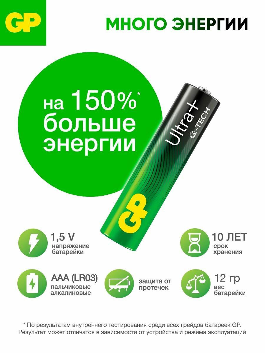Батарейка GP Ultra Plus AAA/LR03 24AUP алкалиновая, BC4 (картон, 40шт.) (24AUPA21-2CRSB4) 7 914 ₽
