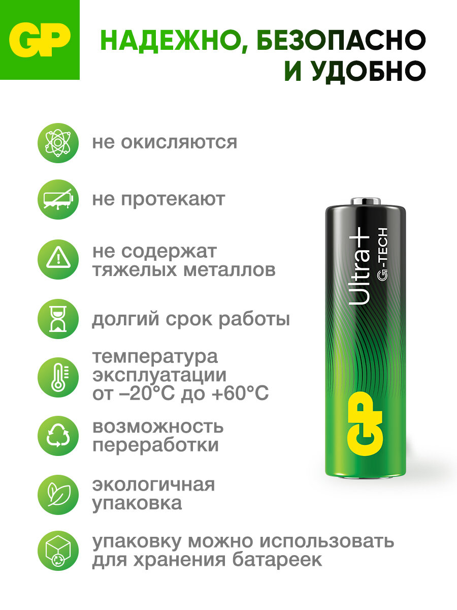 Батарейки ААА мизинчиковые алкалиновые GP G-TECH 24AUPA, LR03, набор 4 шт информация: