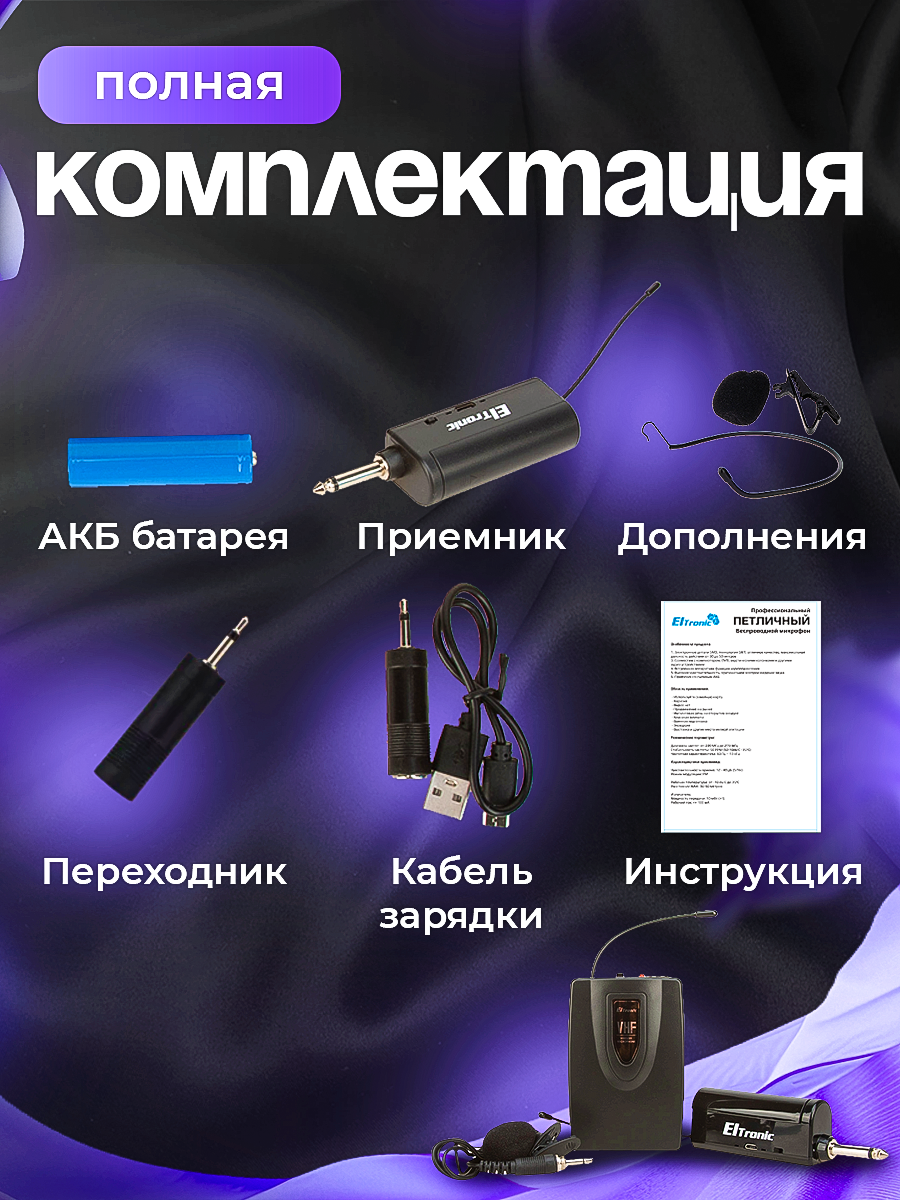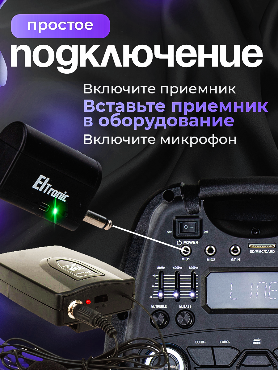 Отзывы на Микрофон ELTRONIC 10-08 головной, беспроводной, приемник, черный