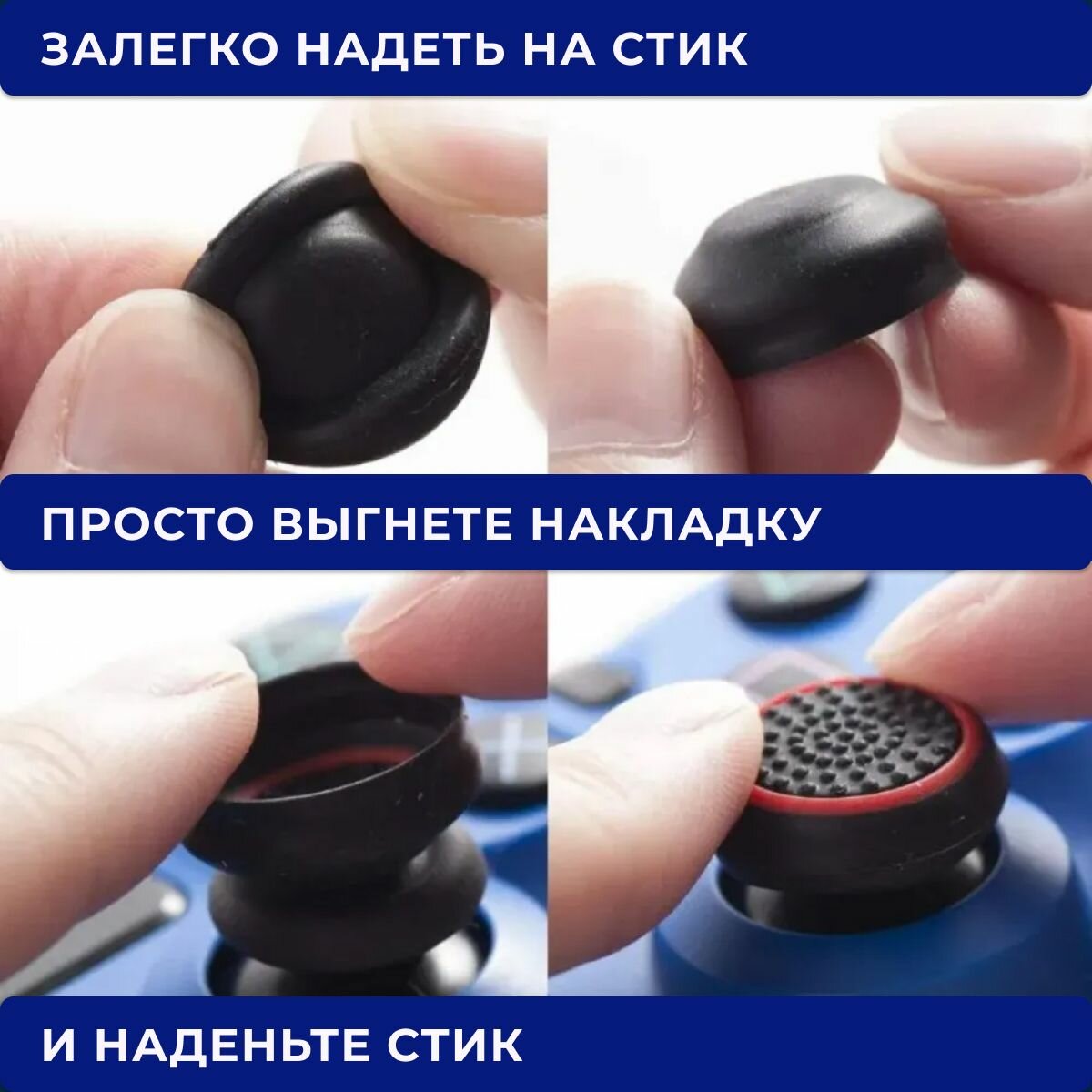 Накладки на стики для геймпада PS3, PS4, PS5, XBOX One, 360, series X, Switch Pro / пс3 пс4 пс5 икс бокс one / Универсальные 4 штук красные 250 ₽