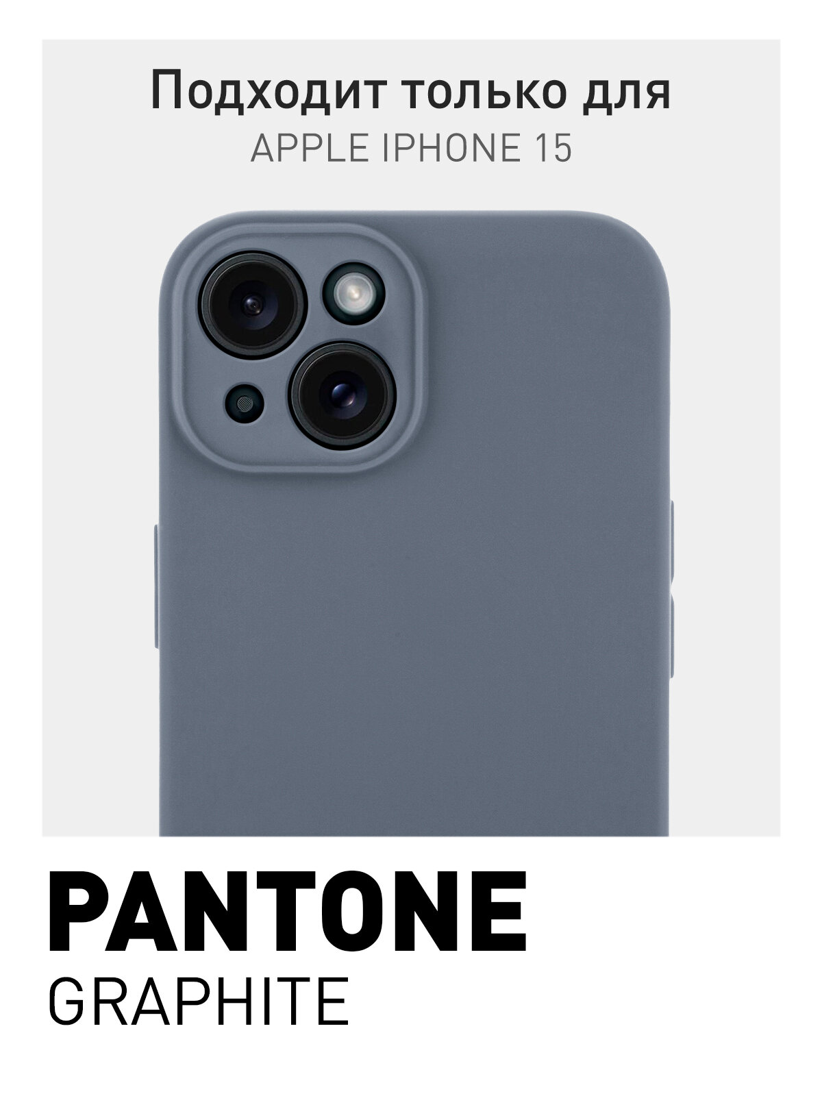 Чехол ROSCO для Apple iPhone 15 (Эпл Айфон 15), силиконовый чехол, тонкий, матовое покрытие, защита модуля камер, графитовый 400 ₽