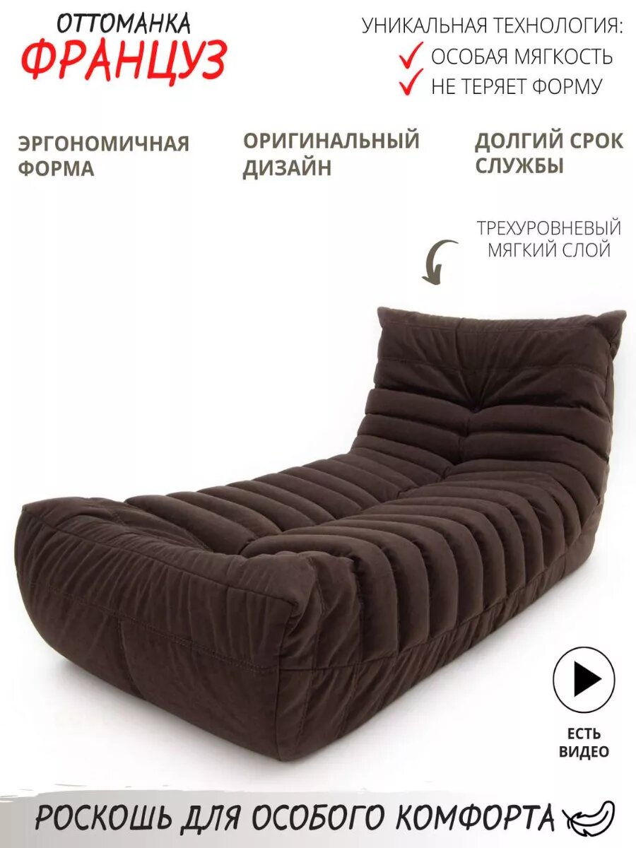 Кресло бескаркасное "Француз Оттоманка" Coolbag (90 см, велюр, коричневый)