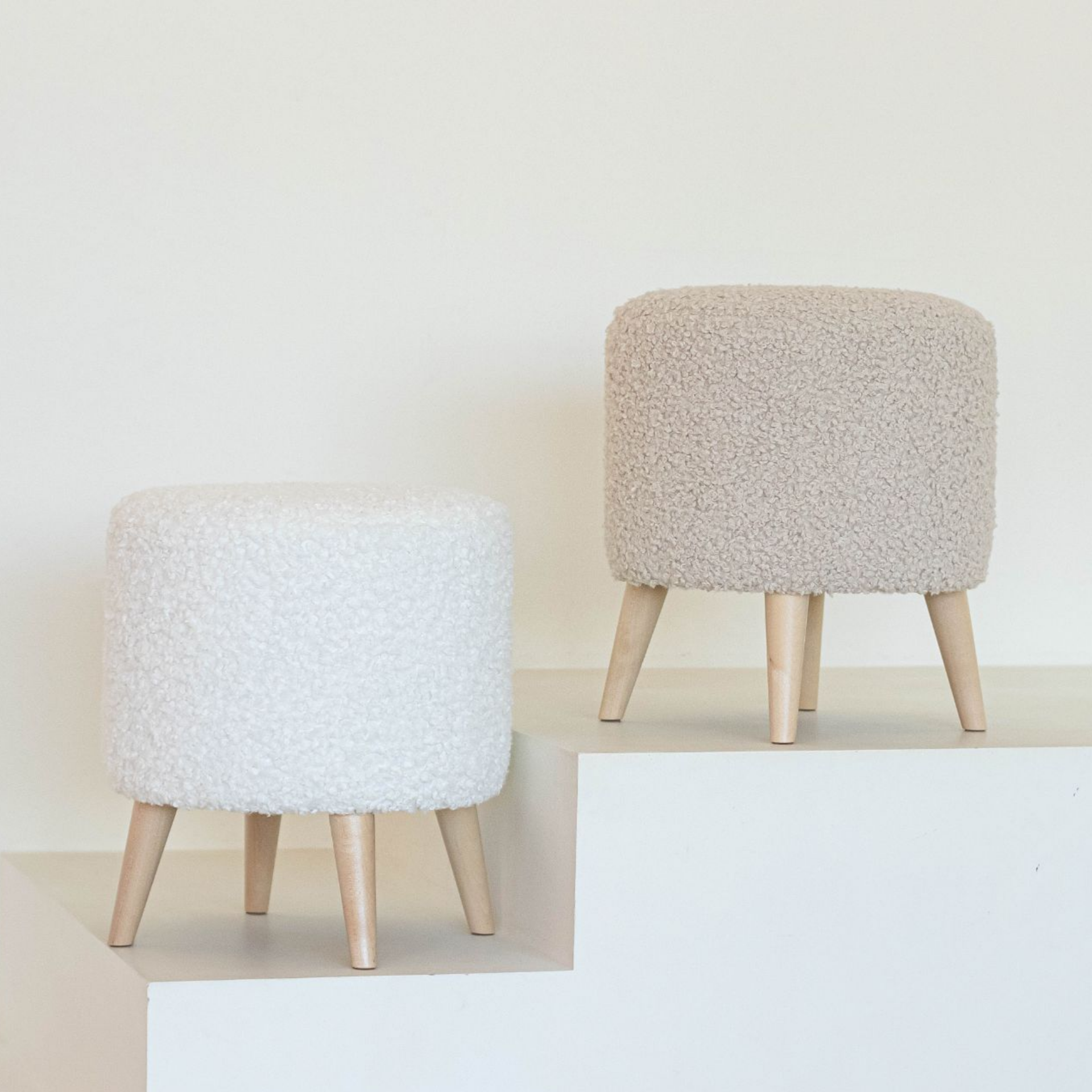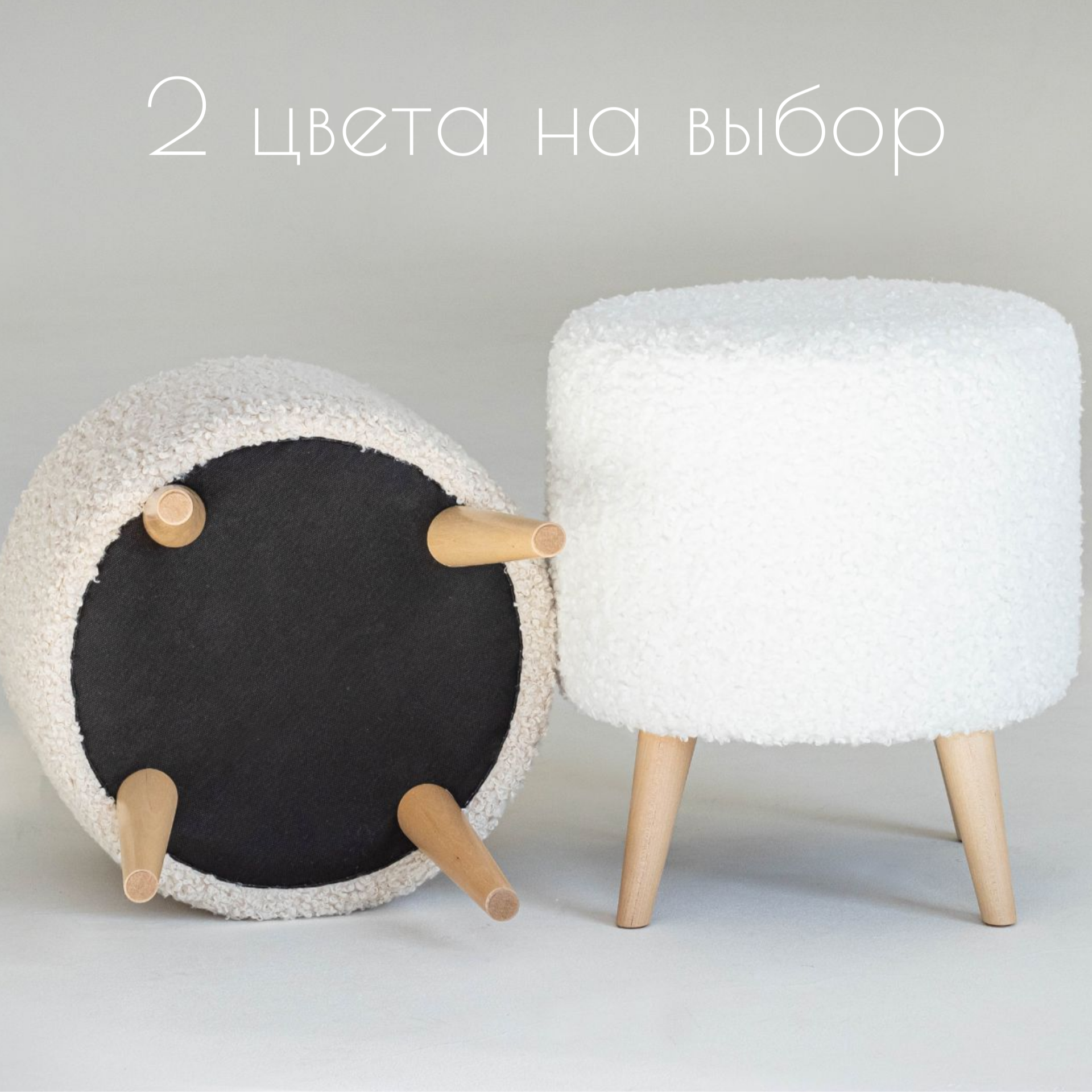 Пуфик в прихожую в спальню Бараныч букле белый DPkids банкетка в прихожую пуфик круглый пуф для спальни для туалетного столика на ножках подставка для ног в примерочную в детскую 6 490 ₽
