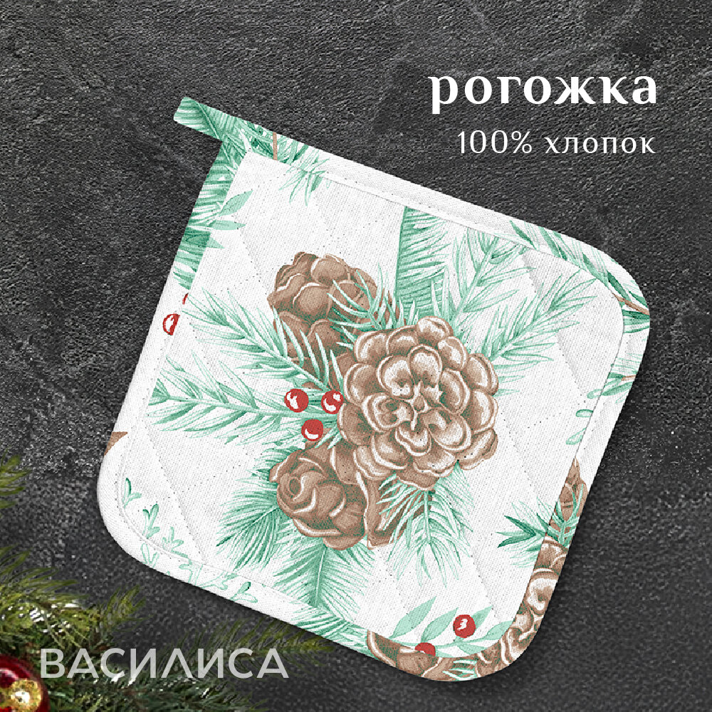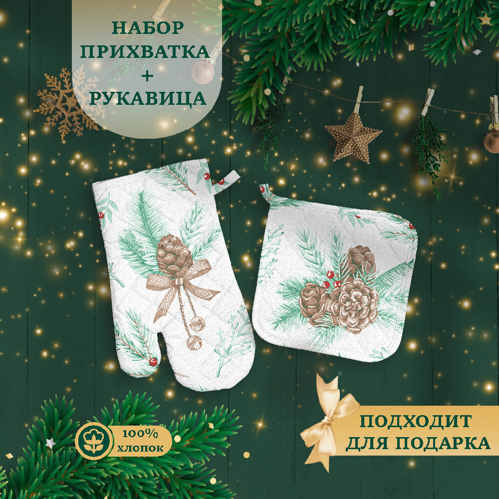 10 цен на Набор кухонный Василиса рукавица + прихватка, Рогожка, хлопок 100%, Новогодний лес