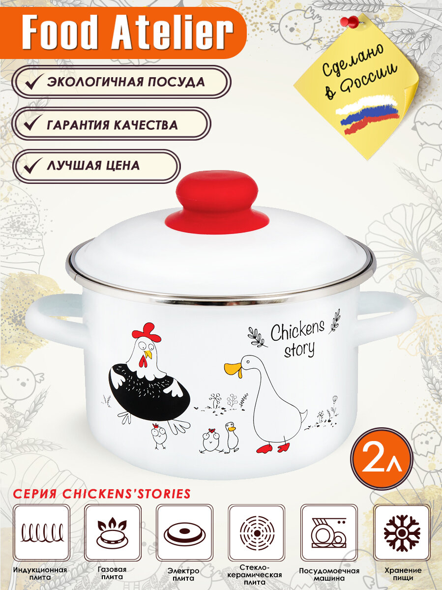 10 цен на Кастрюля эмалированная с крышкой Chickens stories 2,0л ТМ FOOD ATELIER