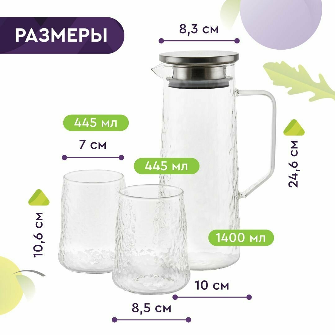 Набор стеклянный кувшин 1400мл и два стакана 445мл Eley информация: