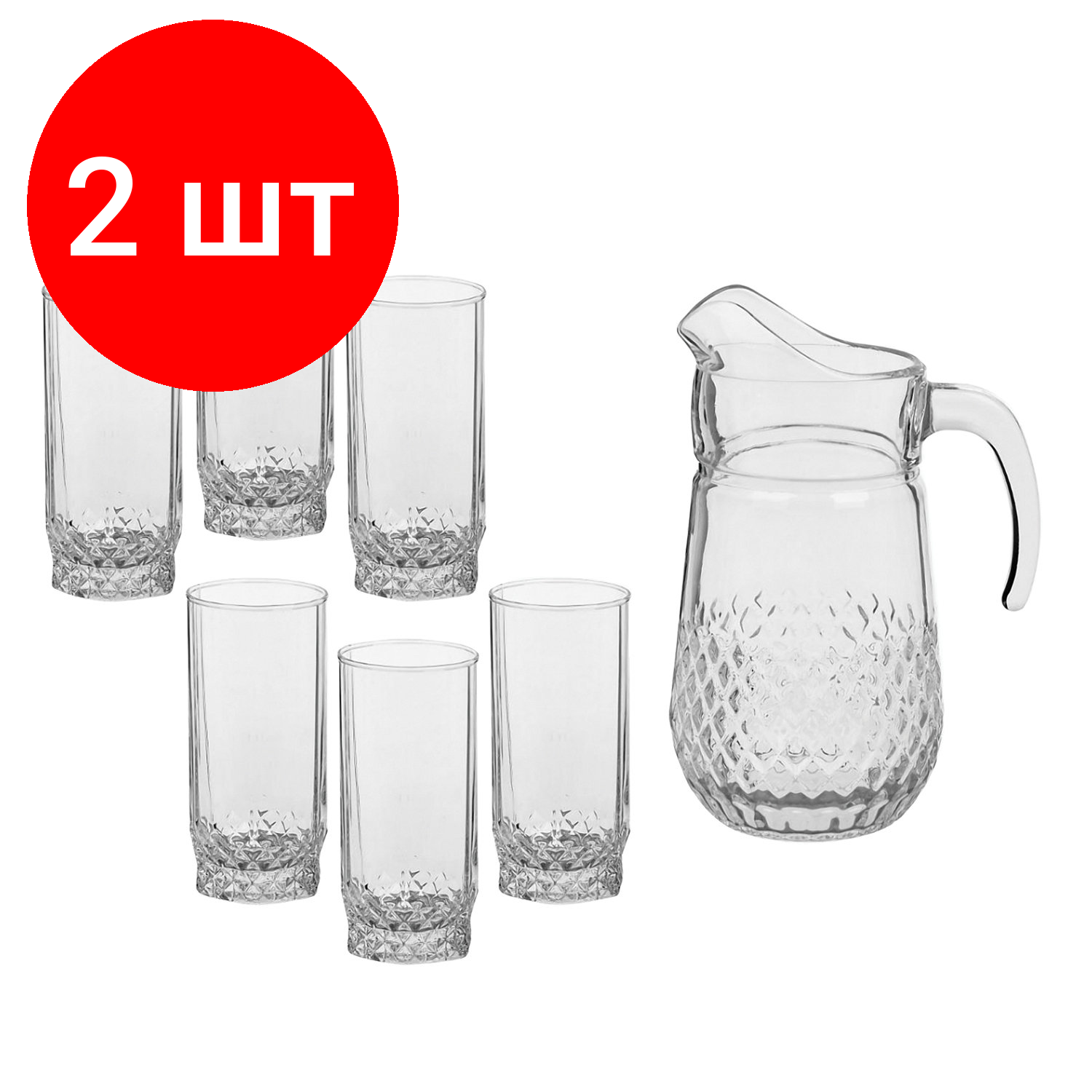 10 цен на Комплект 2 шт, Набор столовый, 7 предметов, кувшин 1250 мл + 6 стаканов 275 мл, стекло, "Valse", PASABAHCE, 97675
