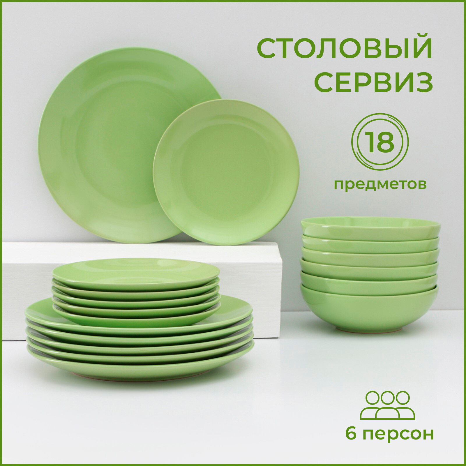 10 цен на Набор тарелок "Пастель", 18 предметов: 6 тарелок d=19 см, 6 тарелок d=27 см, 6 мисок d=19 см, керамика, цвет зелёный