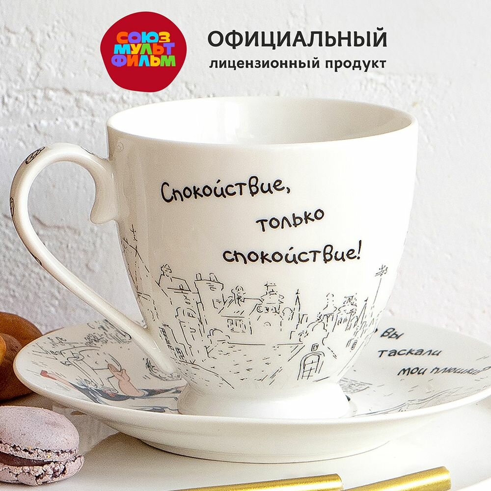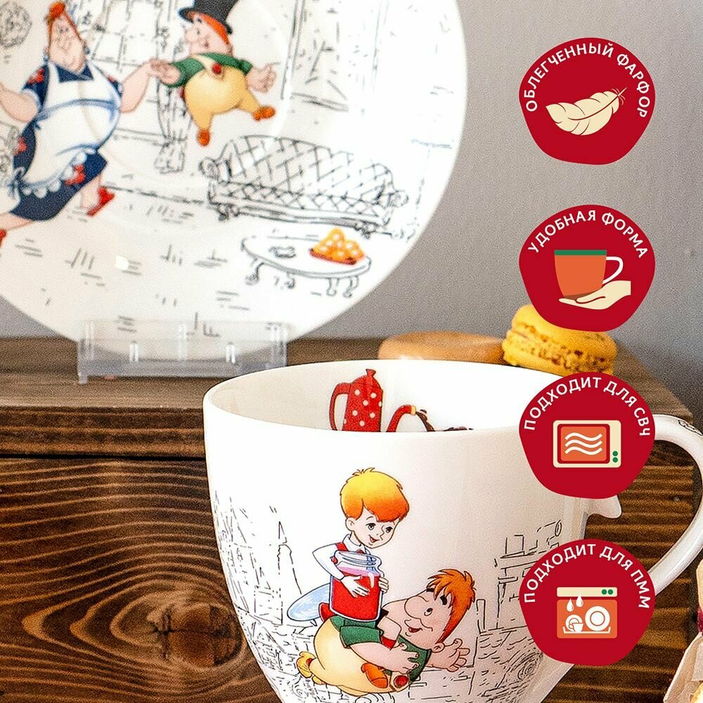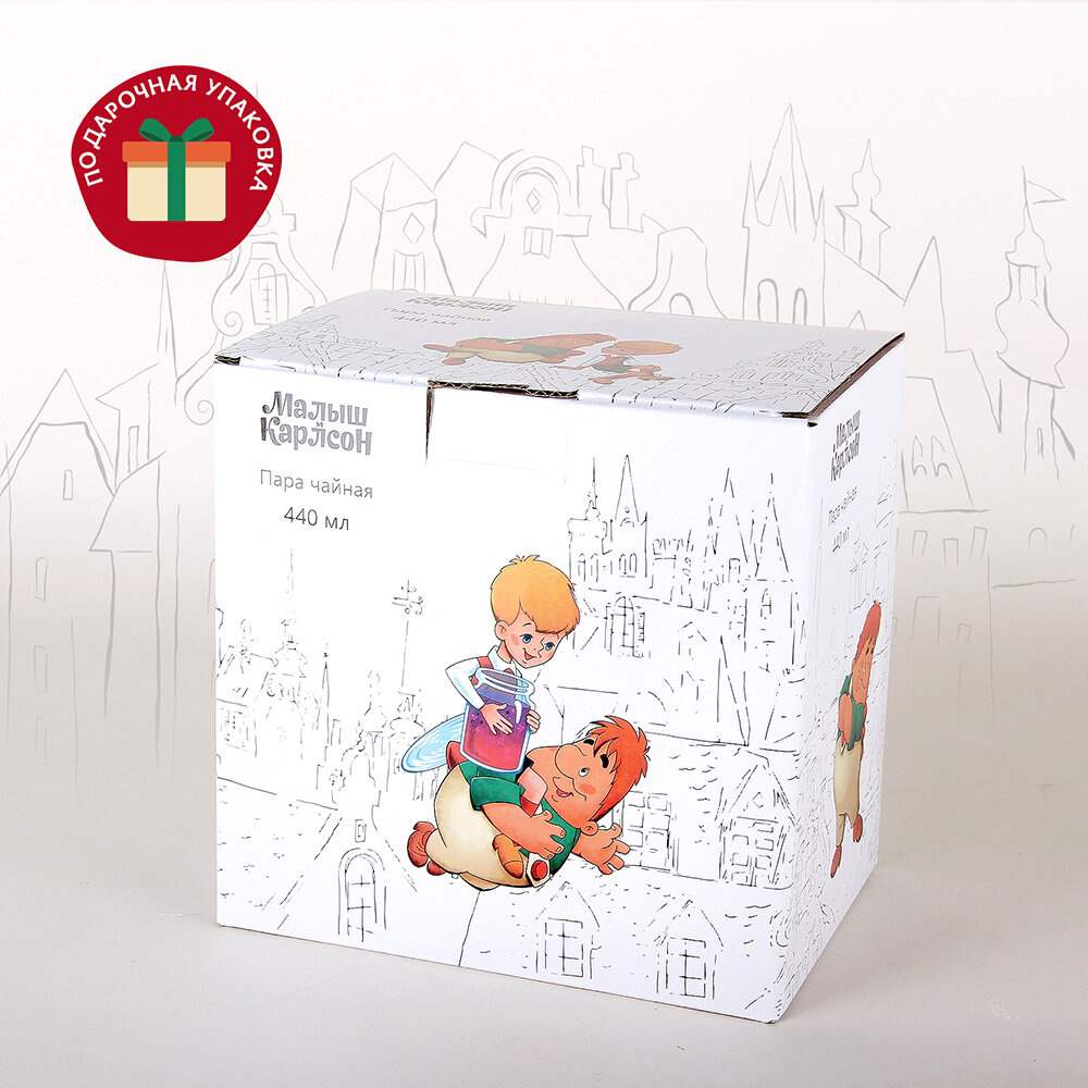 Чайная пара фарфор "Малыш и Карлсон" 440 мл. в подарочной упаковке, чашка с блюдцем, чайный набор на 1 персону. Коралл. информация: