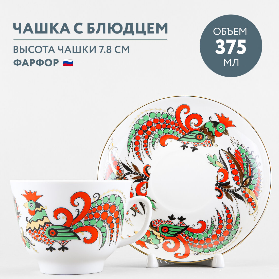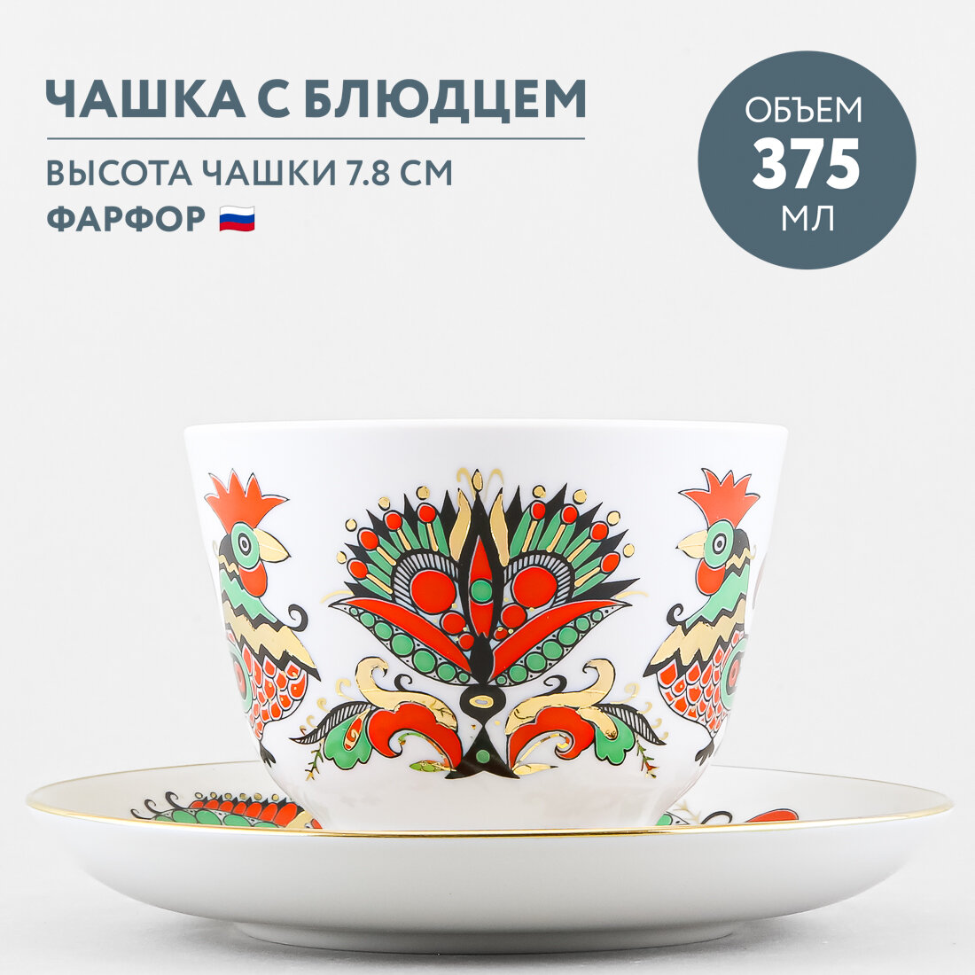 Чайная пара. Форма "Подарочная", рисунок "Два петуха". Твердый фарфор. 375 мл. Императорский фарфоровый завод ИФЗ. информация: