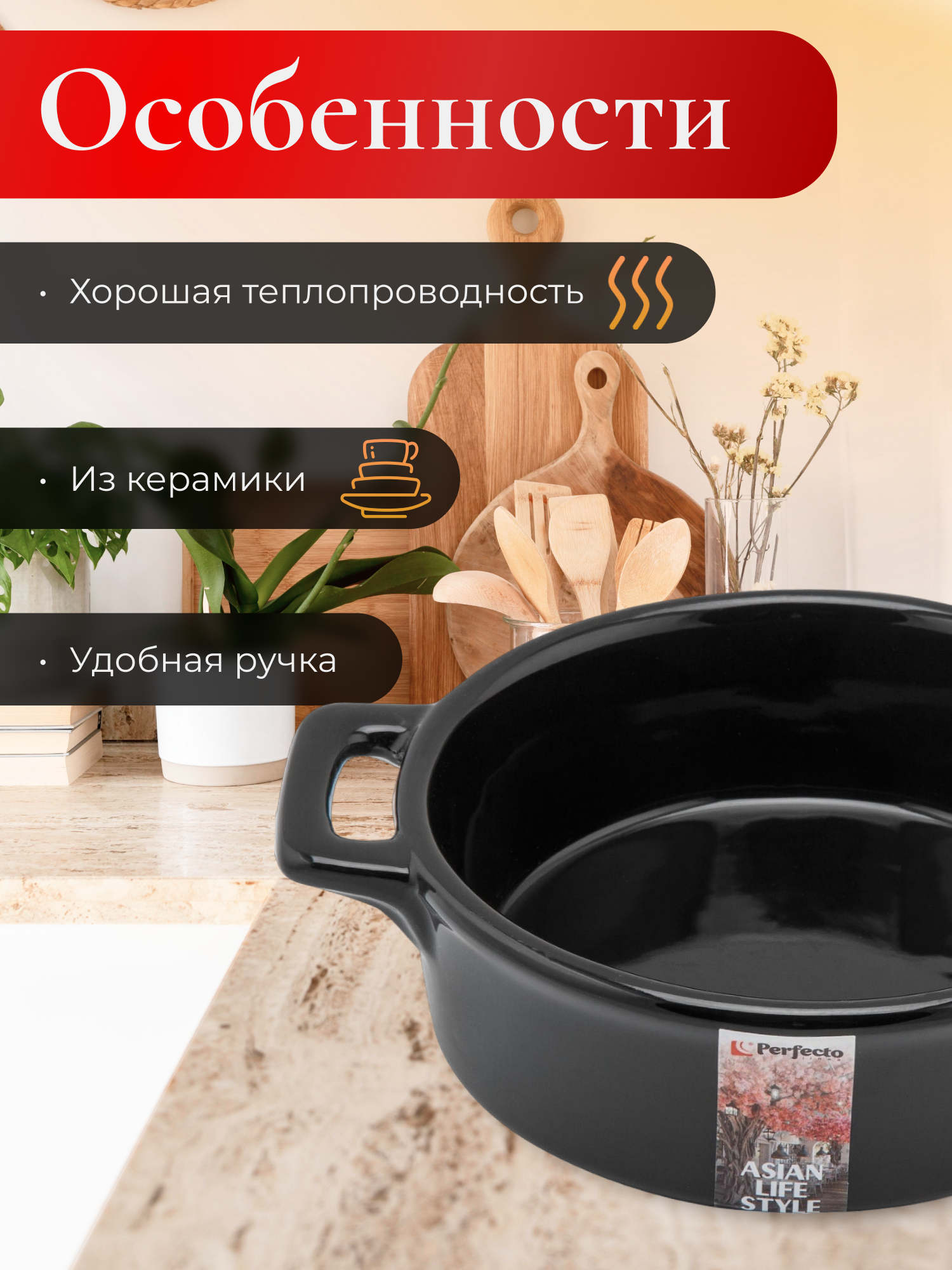 Супница с ручками керамическая PERFECTO LINEA Asian черный (17-117132) информация: