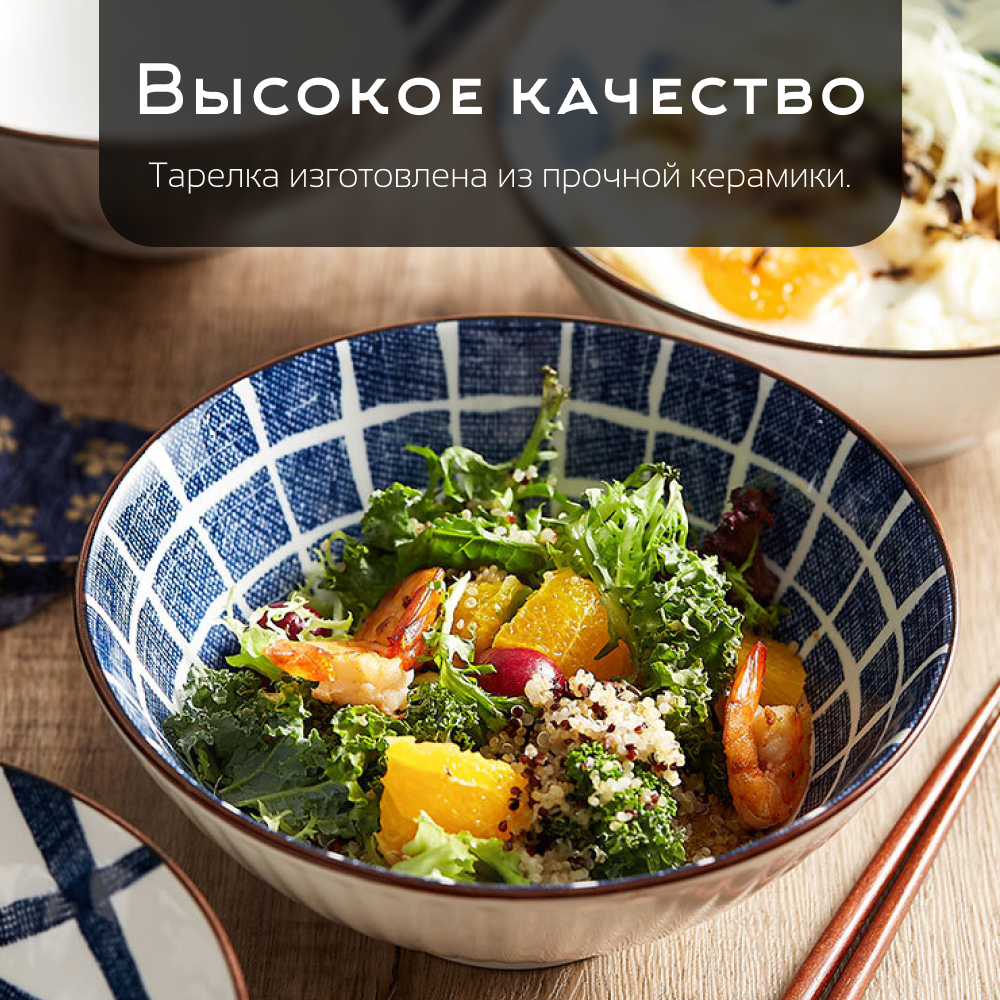 Набор тарелок для вторых блюд и салатов Homium, Japanese Collection, Очарование, глубокая, D20см, цвет белый/синий 4 160 ₽