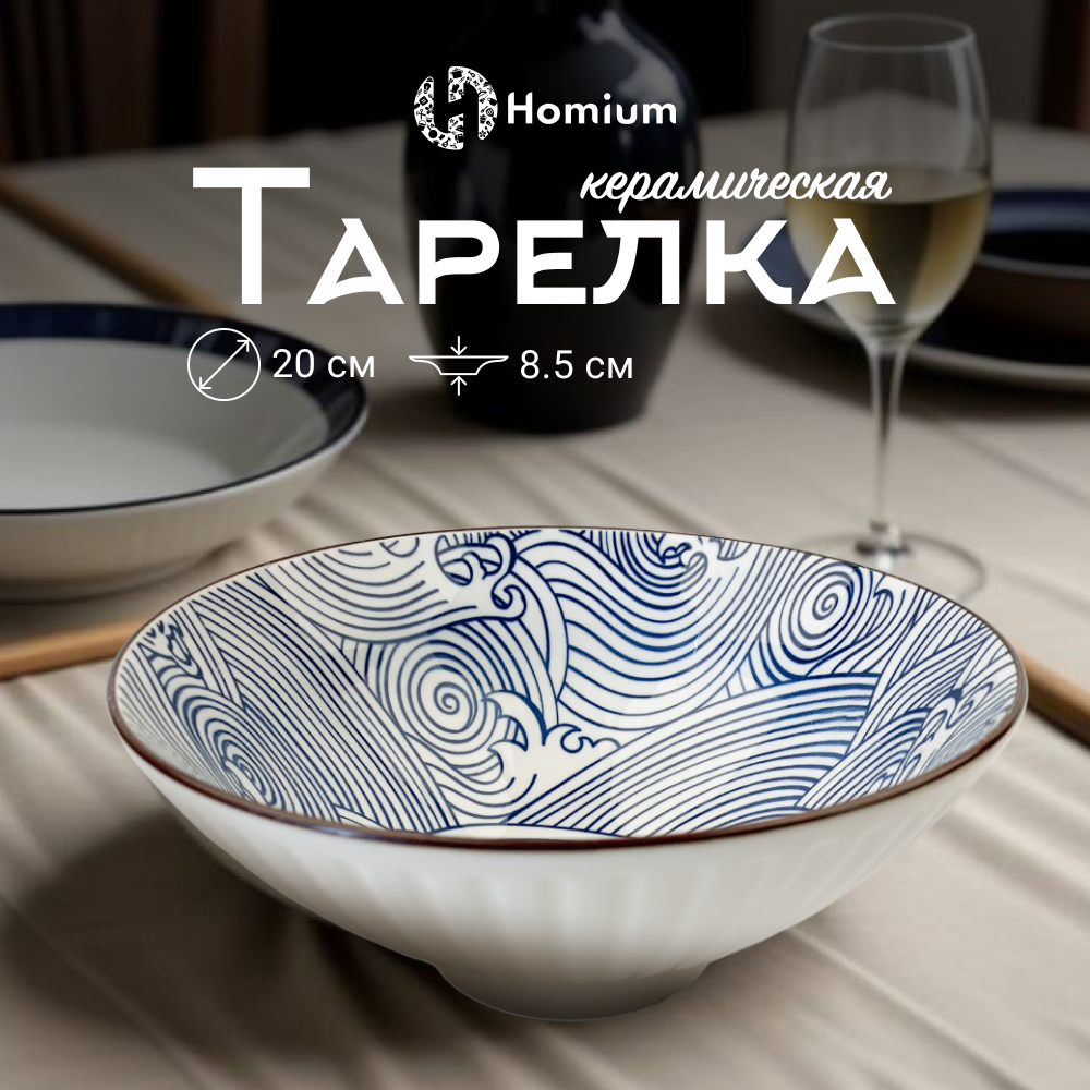 Тарелка из керамики для первых блюд Homium, Japanese Collection, Top, D20.5см, цвет синий 913 ₽