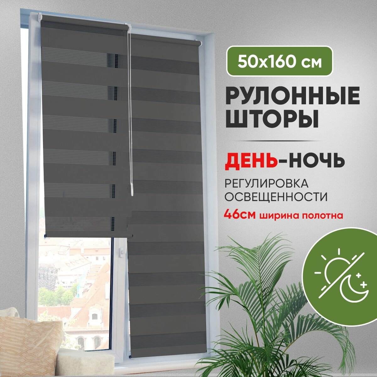 Рулонные шторы день ночь 50 на 160 см серые двойные на окно информация: