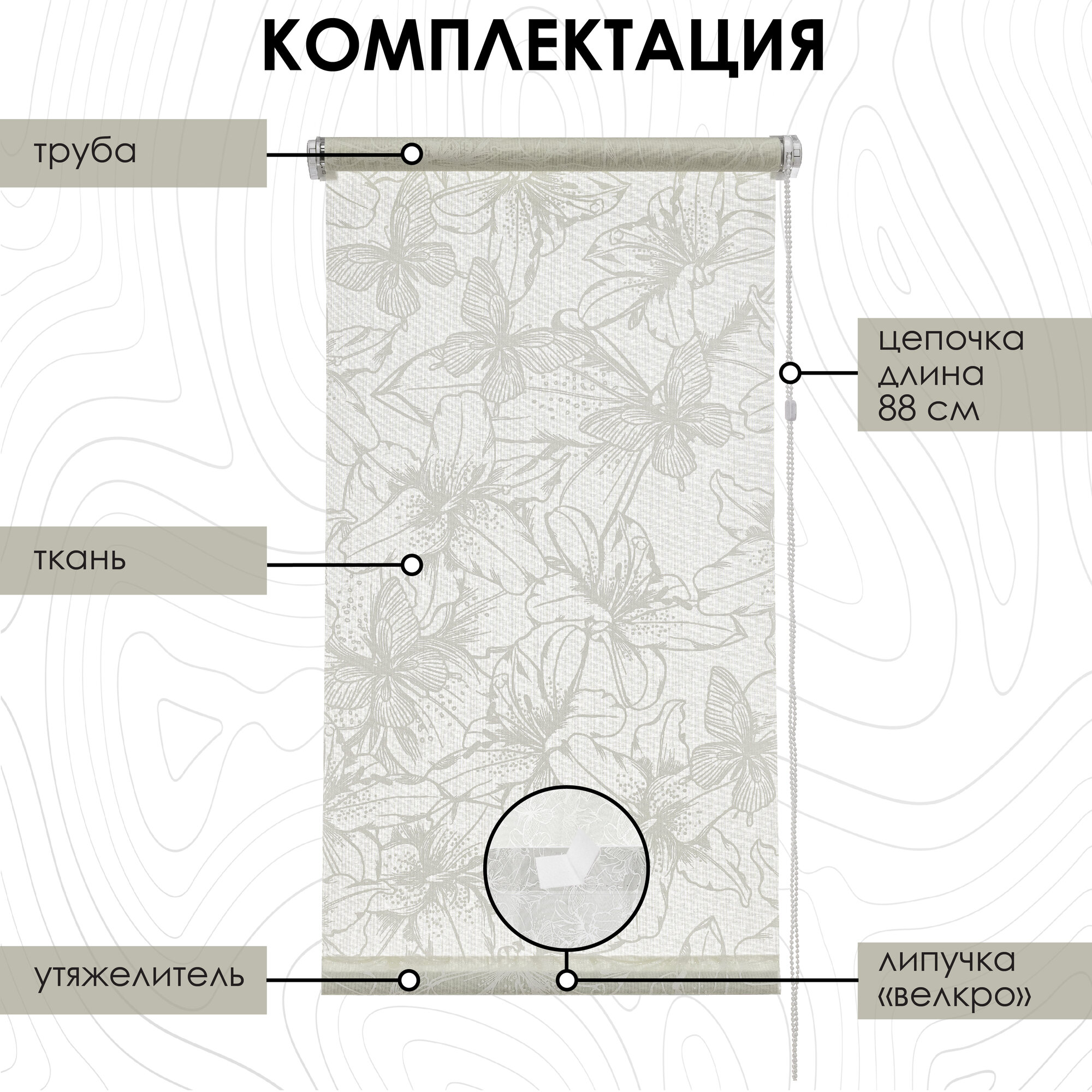 | Комплектация | рулонная штора, монтажный комплект |