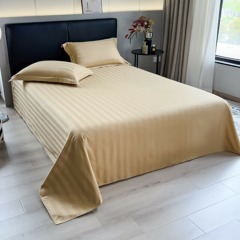 Постельное белье евростандарт 2 спальное/ евро/ BorisMency Страйп сатин простынь 215x230 кремовый