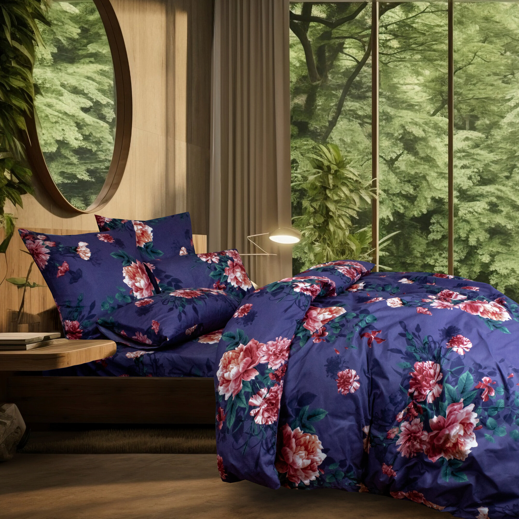 Постельное белье семейное с цветочным принтом Cleo Art Color, комплект из полисатина с двумя пододеяльниками 1 955 ₽