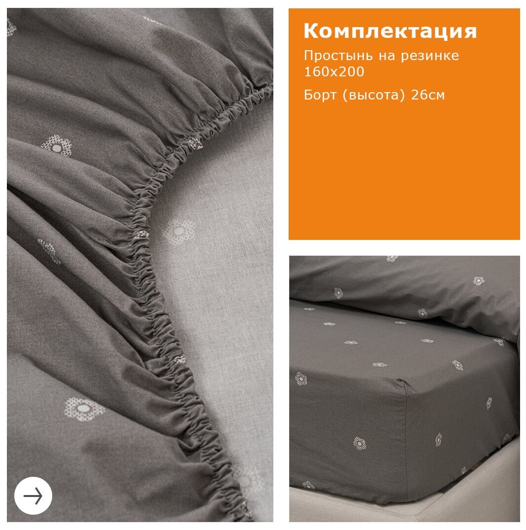 Простыня на резинке 160х200+26,YERRNA, перкаль, темно-серый,