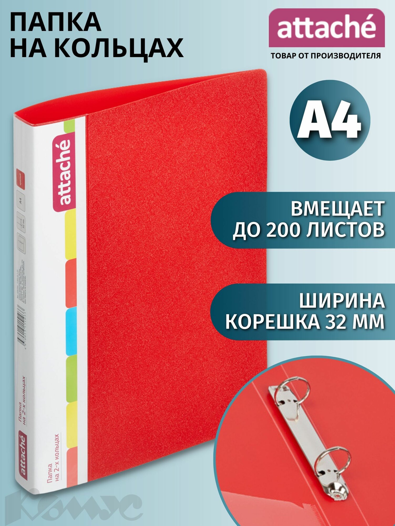 Папка на 2-х кольцах пласт. 25/32мм А4 Attache 07 красный информация: