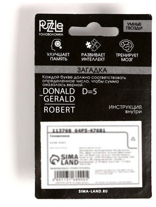 Puzzle Головоломка «Умные гвозди» № 15 информация: