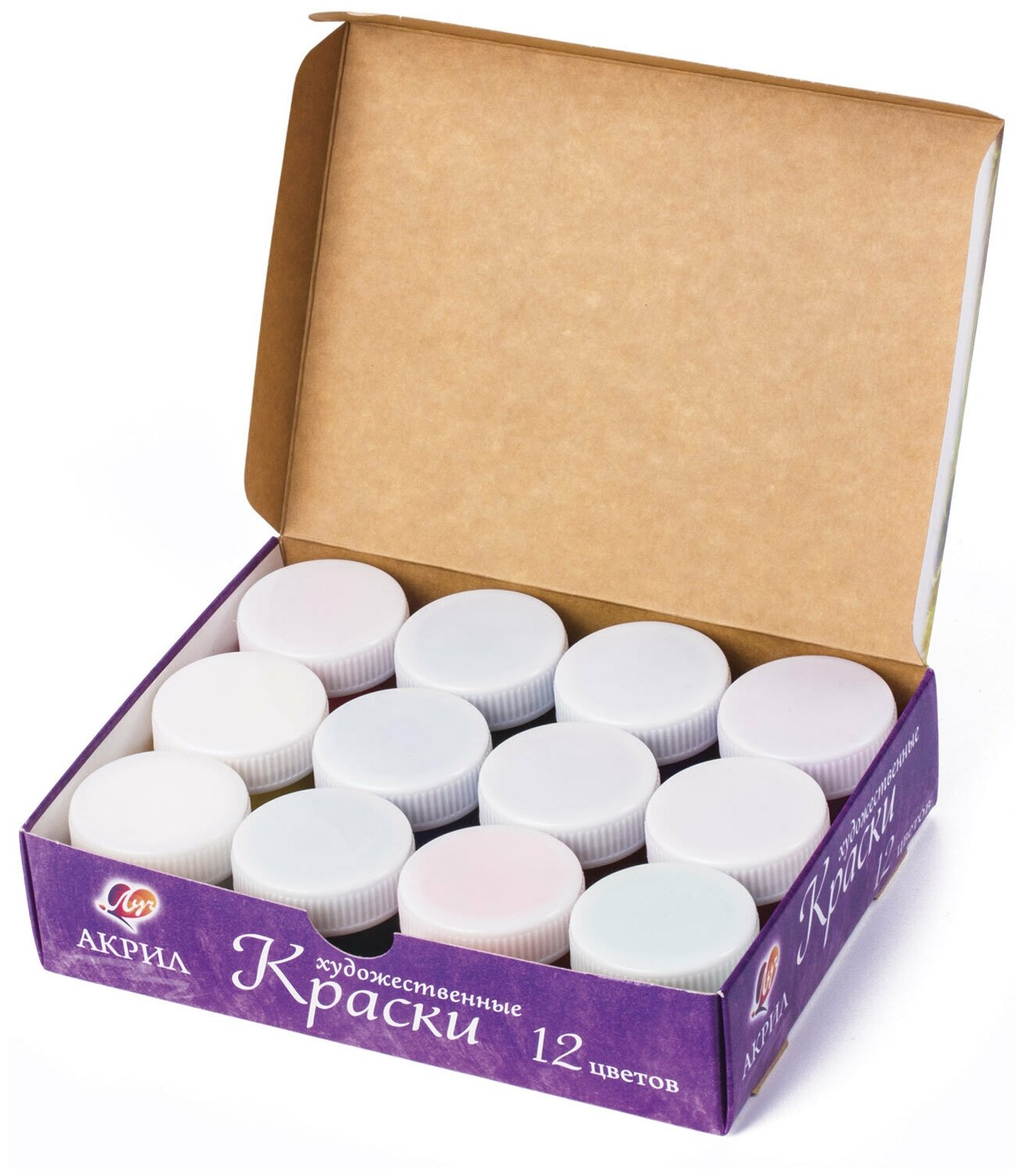 Краски акриловые художественные Луч, 12 цветов по 20 мл, в баночках, 22С1409-08 .