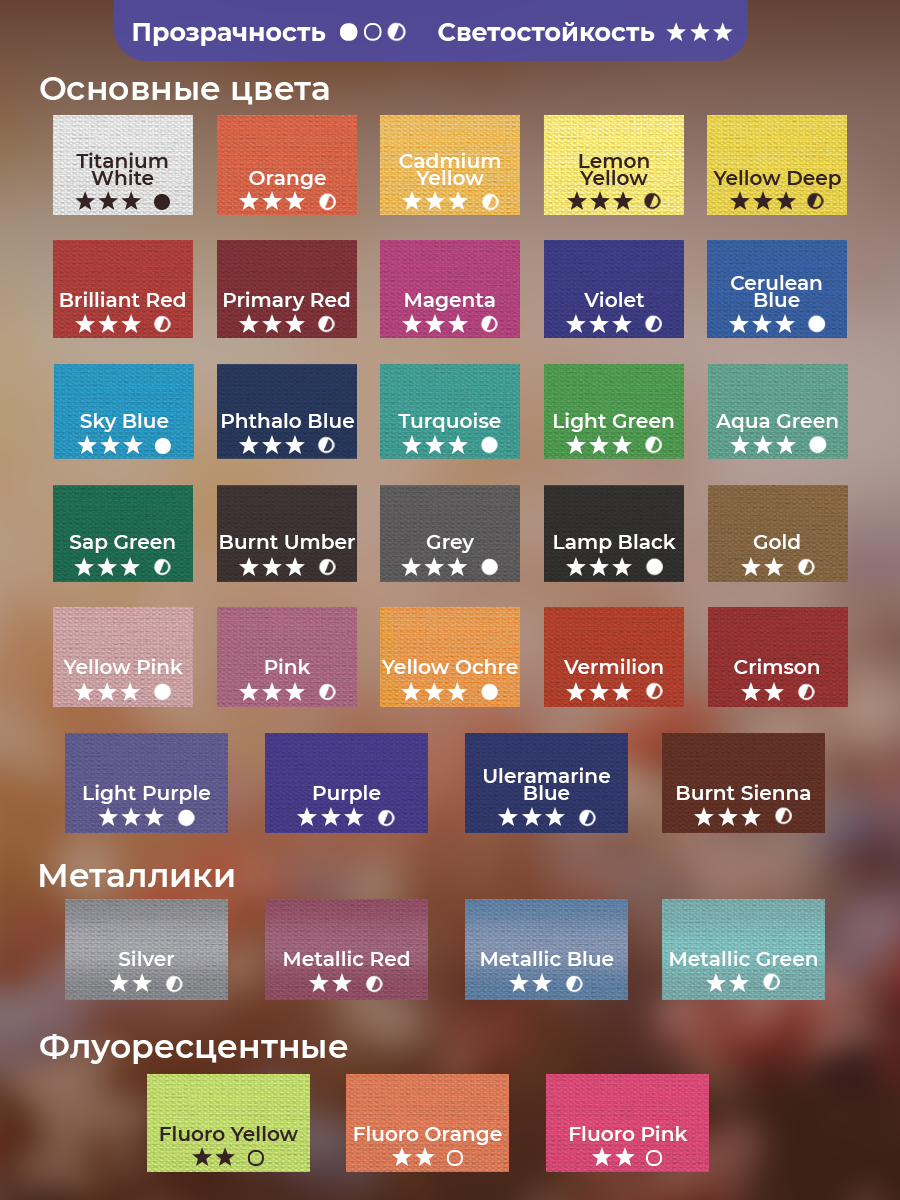 Акриловые краски для ткани WiMi набор 36 цветов информация: