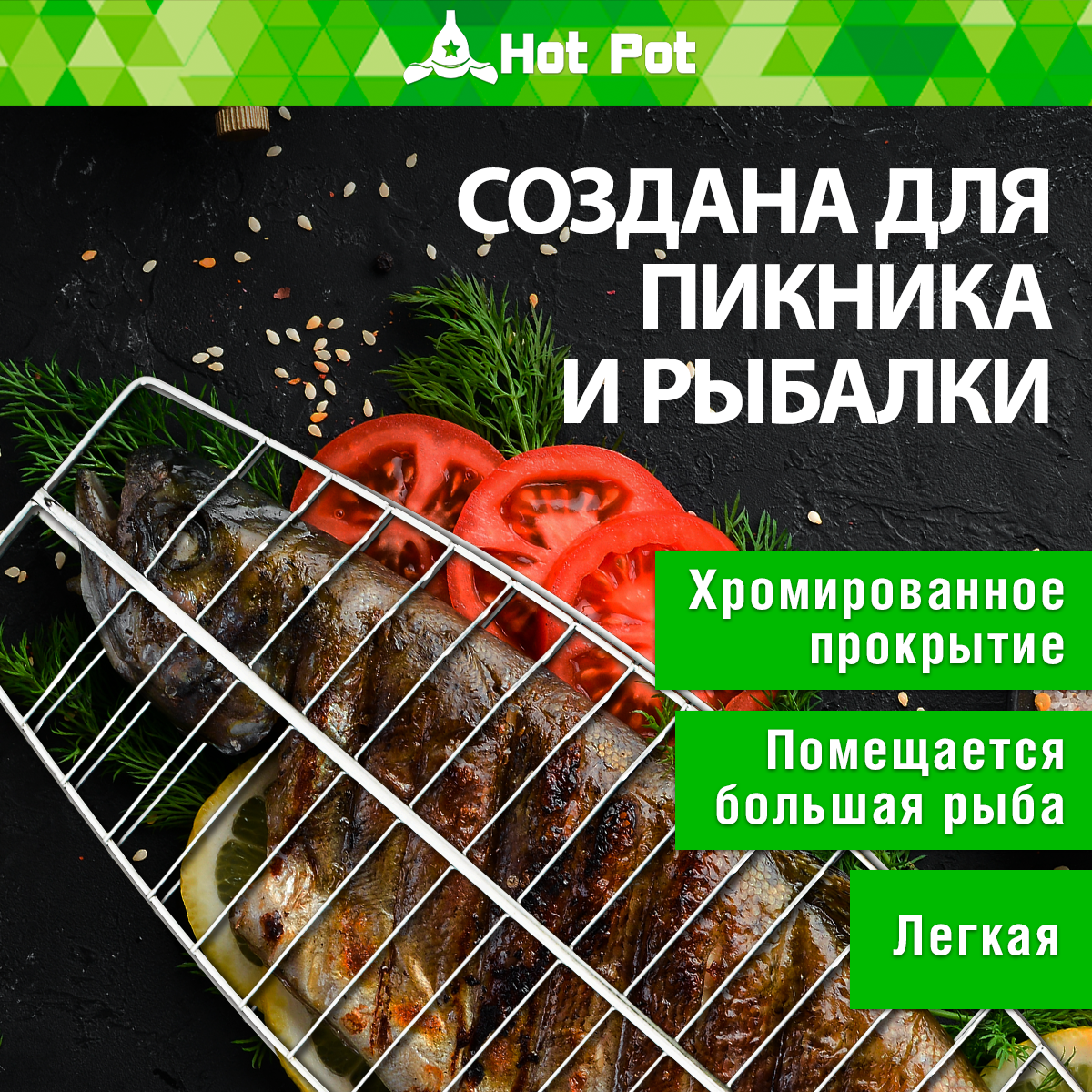10 цен на Решетка-гриль для рыбы /на мангал/барбекю/гриля/шашлыка/ 60(+4)х36х12х4 см Hot Pot