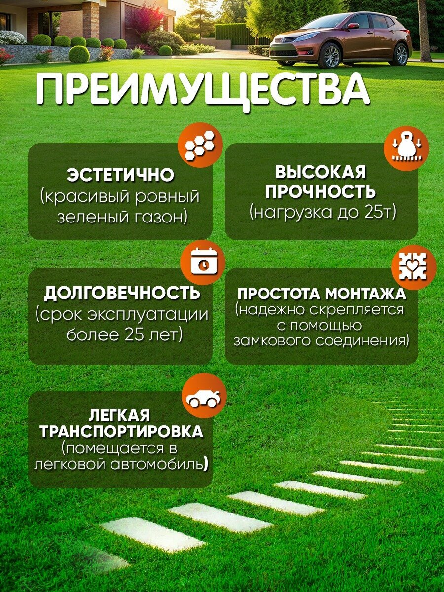 Газонная решетка для парковки форма для тротуарной плитки 60х40х10 см экопарковка (упаковка: 1 шт) /альтернатива 8 кирпичей