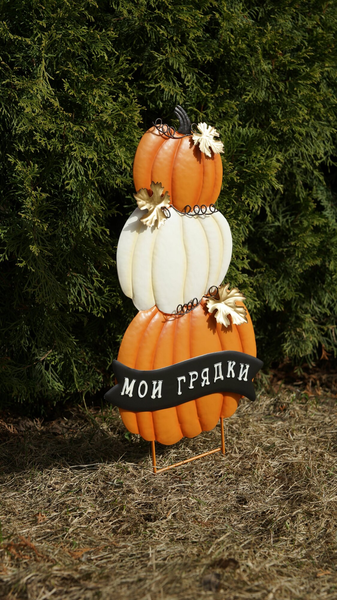 Отзывы на Садовый осенний декор для грядки Три тыквы "Мои грядки", оранжевый-белый-оранжевый (вар.1)