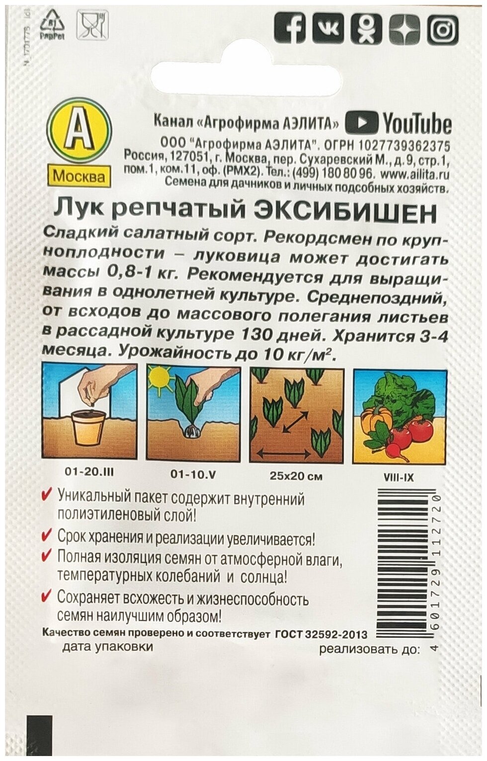 Семена Лук репчатый Эксибишен 0,2г Поздние (Аэлита) Лидер информация: