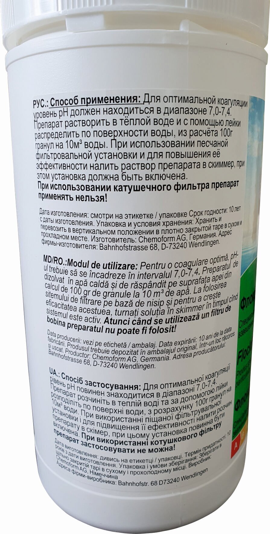 Флокфикс гранулированный 1 кг, Кемоформ информация: