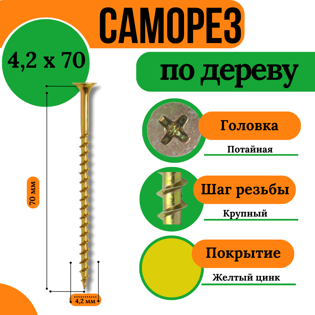 Саморез по дереву, жёлтый цинк 70х4,2мм 1кг. информация:
