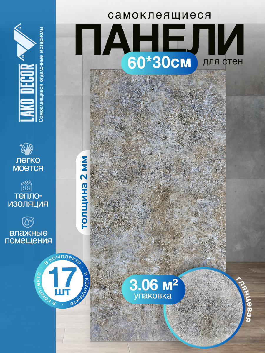 Комплект 17 шт. самоклеящейся ПВХ плитки LAKO DECOR цвет "Триполи", 60х30см, толщина 2мм, площадь 3,06 м2 2 325 ₽