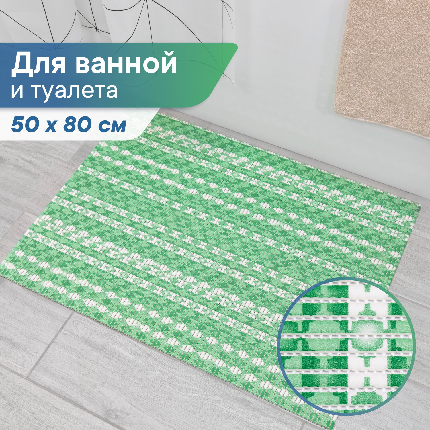 Коврик для ванны душа и туалета VILINA из вспененного ПВХ противоскользящий мягкий безворсовый 50х80см рисунком 100GR информация: