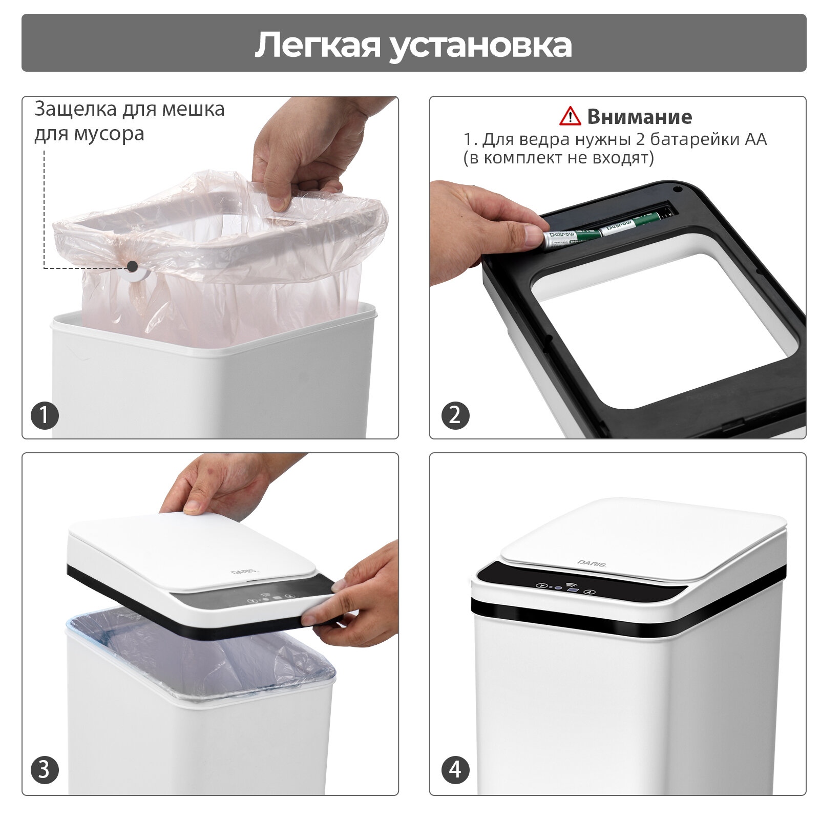 Отзывы на Сенсорное мусорное ведро DARIS с крышкой 15 литров и 9 литров (2 шт.)