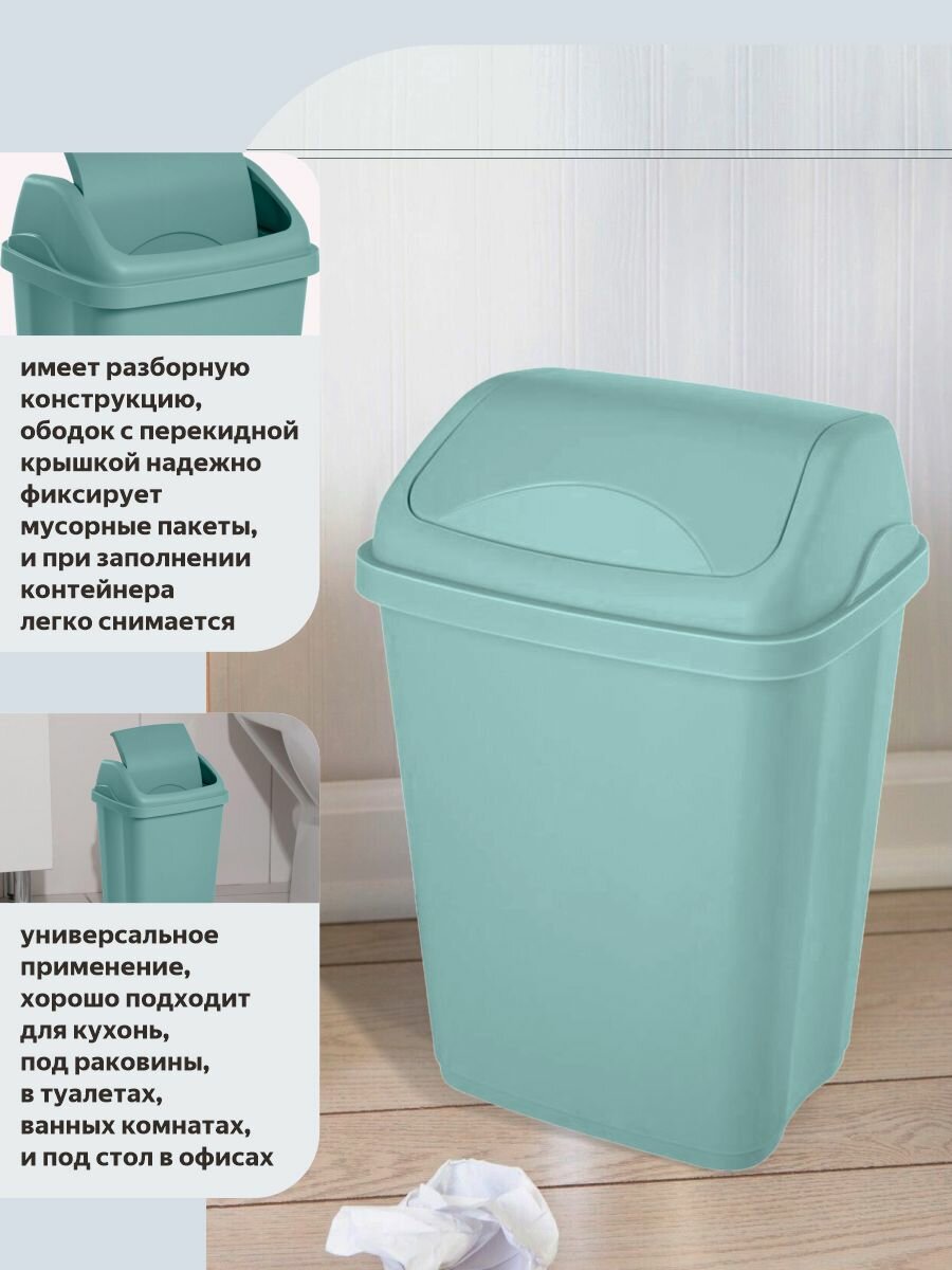 Контейнер с крышкой для мусора 10 л, серо-голубой информация: