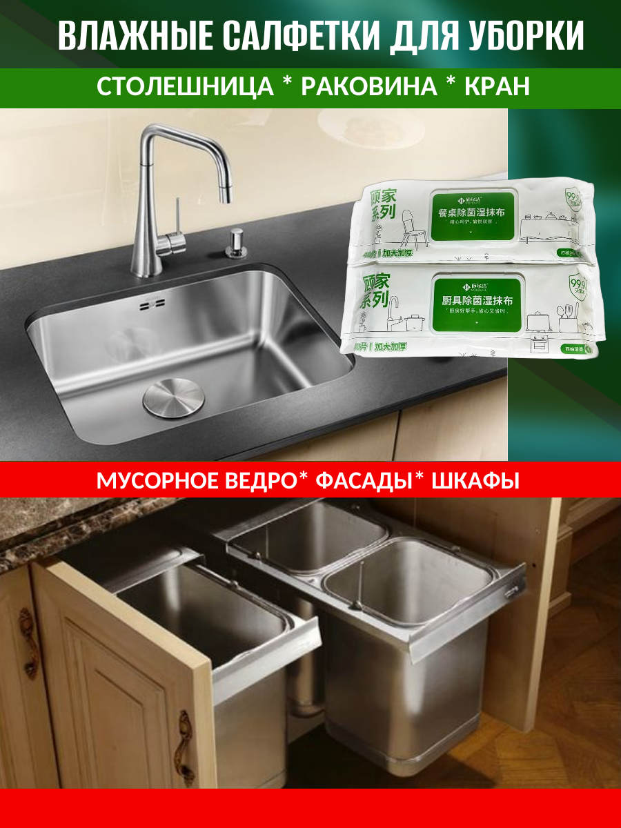 Универсальные влажные салфетки для уборки кухни 2 уп информация: