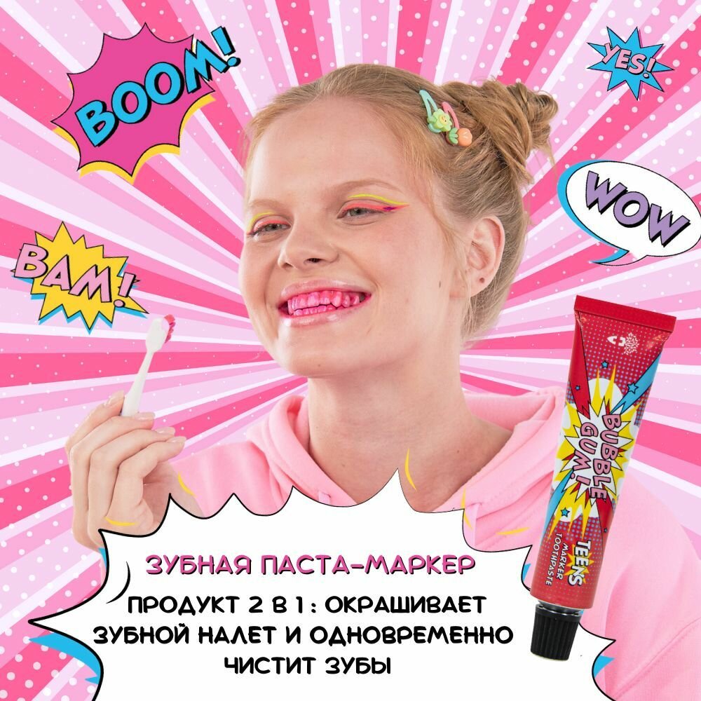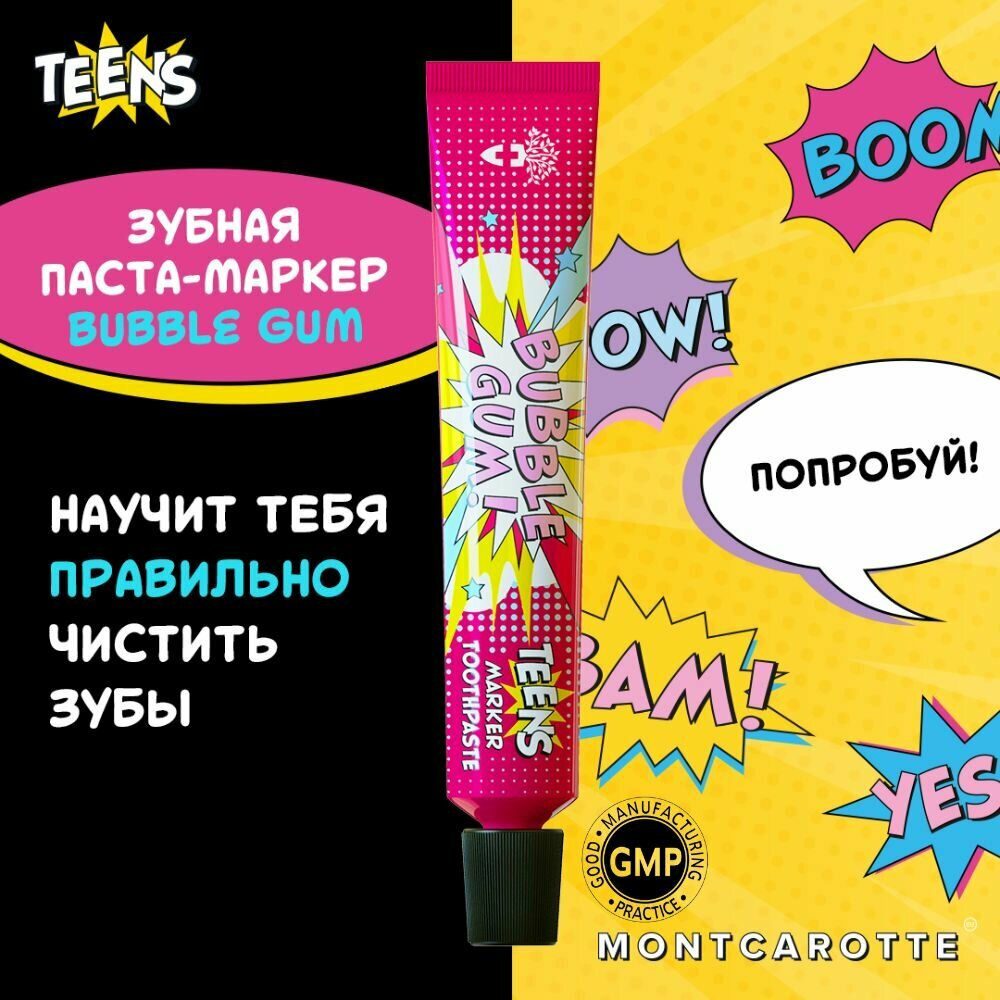 Зубная паста - маркер MontCarotte Bubble Gum, со вкусом жвачки, индикатор зубного налета, 2 в 1, обучение чистки зубов, 30 мл, Монткаротт, Италия